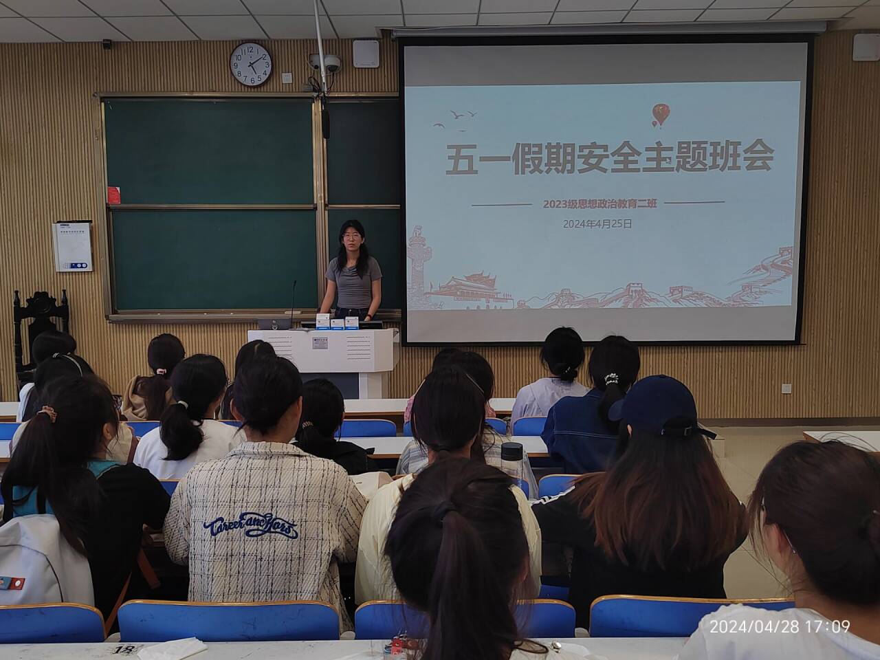 为提升学生假期安全意识,保障学生假期安全,4月25日上午,太阳集团tyc59972023级思想政治教育二班在社科楼515教室召开五一假期安全主题班会。本次班会由班长王慜初支持,全体二班同学参加。