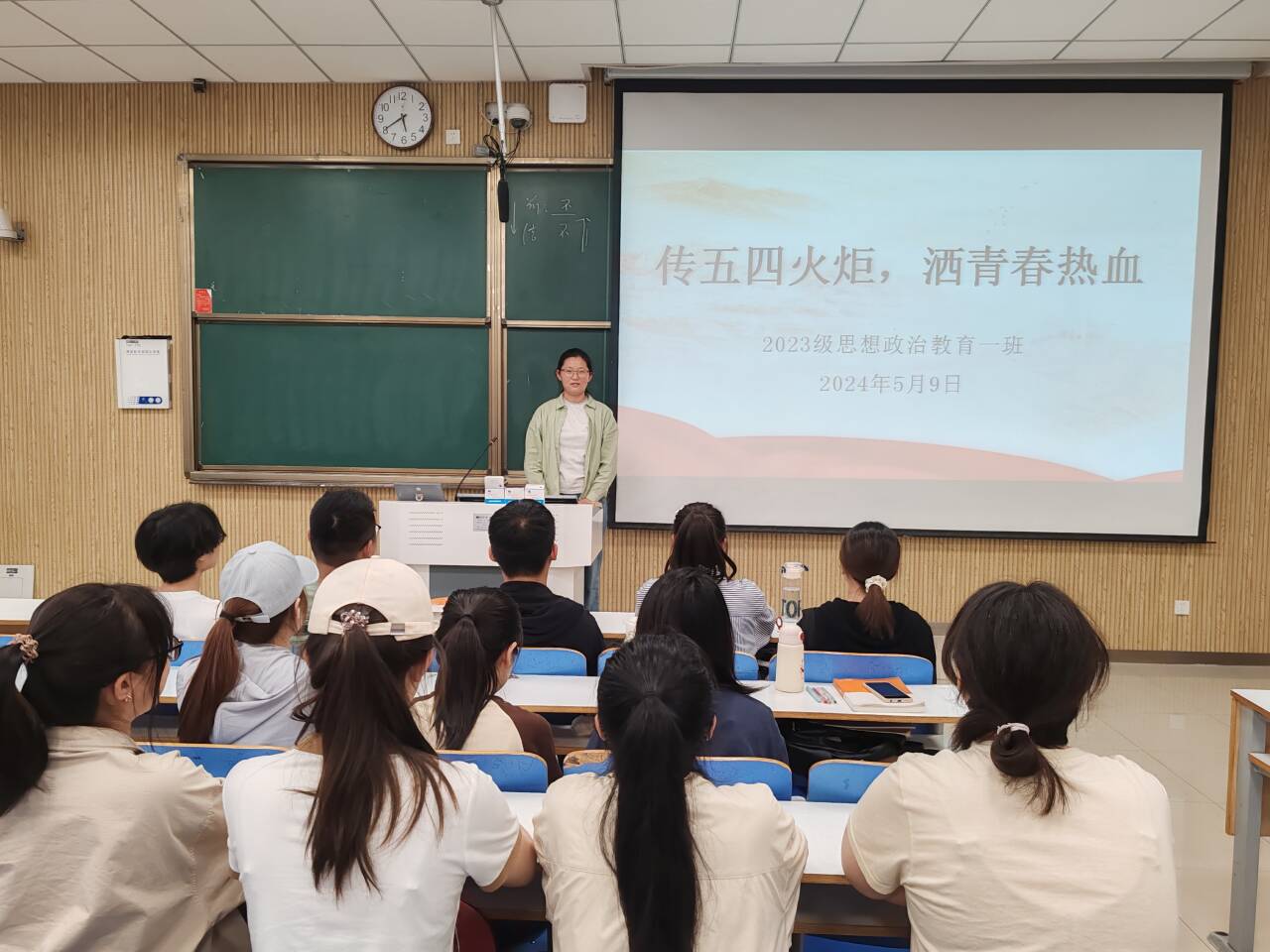 为进一步弘扬五四精神,激励和引导我班团员加强党团知识学习,5月9日下午,太阳集团tyc59972023级思想政治教育一班在社科楼515教室召开“传五四火炬,洒青春热血”主题团课。我院2023级思想政治教育一班全体同学共同参与本次团课,团课由团支书张卓主持。