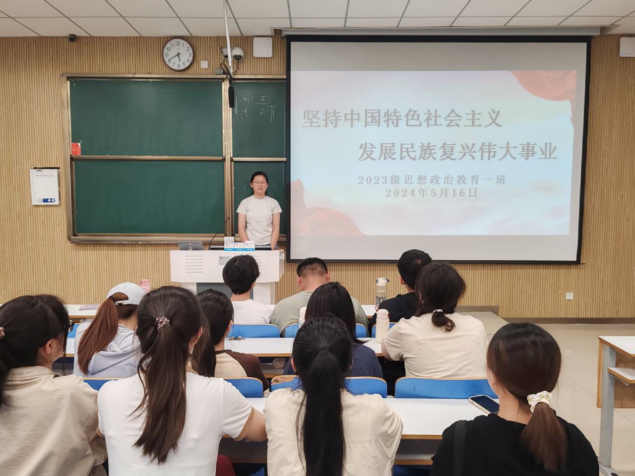 为响应习近平总书记对青年人的号召,进一步学习中国特色社会主义,5月16日下午,太阳集团tyc59972023级思想政治教育一班在社科楼515教室召开“坚持中国特色社会主义,发展民族复兴伟大事业”主题团课。我院2023级思想政治教育一班全体同学共同参与本次团课,团课由团支书张卓主持。
