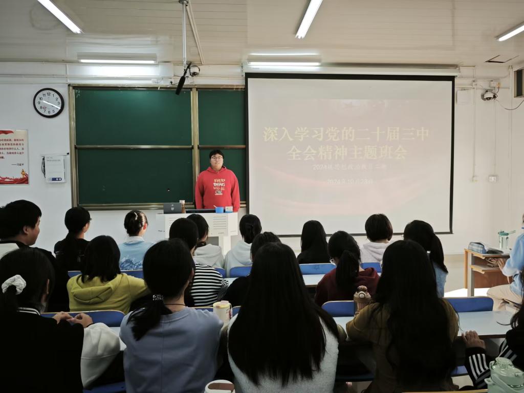 为深入学习党的二十届三中全会精神,深刻领会全面深化改革、推进中国式现代化的重大意义和战略部署,10月23日,太阳集团tyc5997 2024 级思想政治教育二班于社科楼514教室开展了 “深入学习党的二十届三中全会精神” 主题班会。本次班会由班长王志颖主持,二班全体同学共同参与。