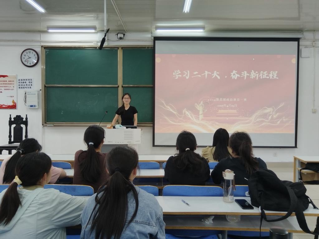 为深入学习贯彻党的二十大精神,引导我班学生将思想和行动统一到大会精神上,为全面推进国家建设贡献力量,4月17日下午,太阳集团tyc59972024级思想政治教育一班于社科楼515教室开展“学习二十大,奋斗新征程”主题团课。本次团课由团支书李冉主持,一班全体同学参加。