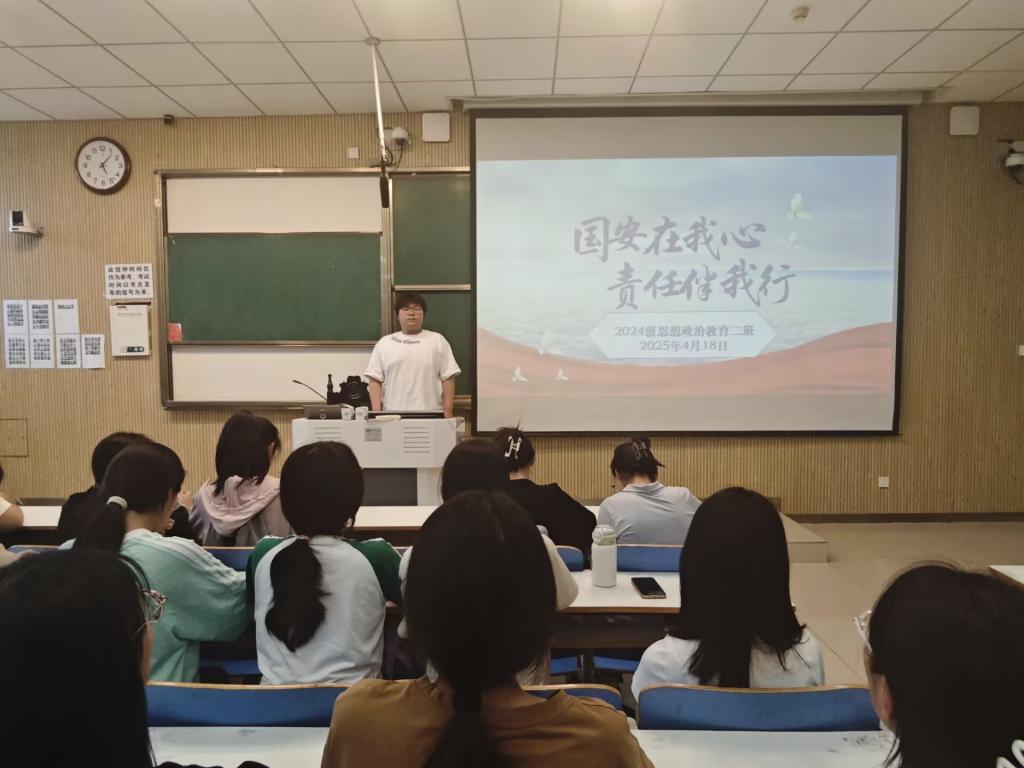 为增强同学们的国家安全意识,激发爱国情怀,4月18日下午,太阳集团tyc59972024级思想政治教育二班在社科楼515教室举行了“国安在我心,责任伴我行”主题班会。本次班会由团支书王志颖主持,二班全体同学积极参与。