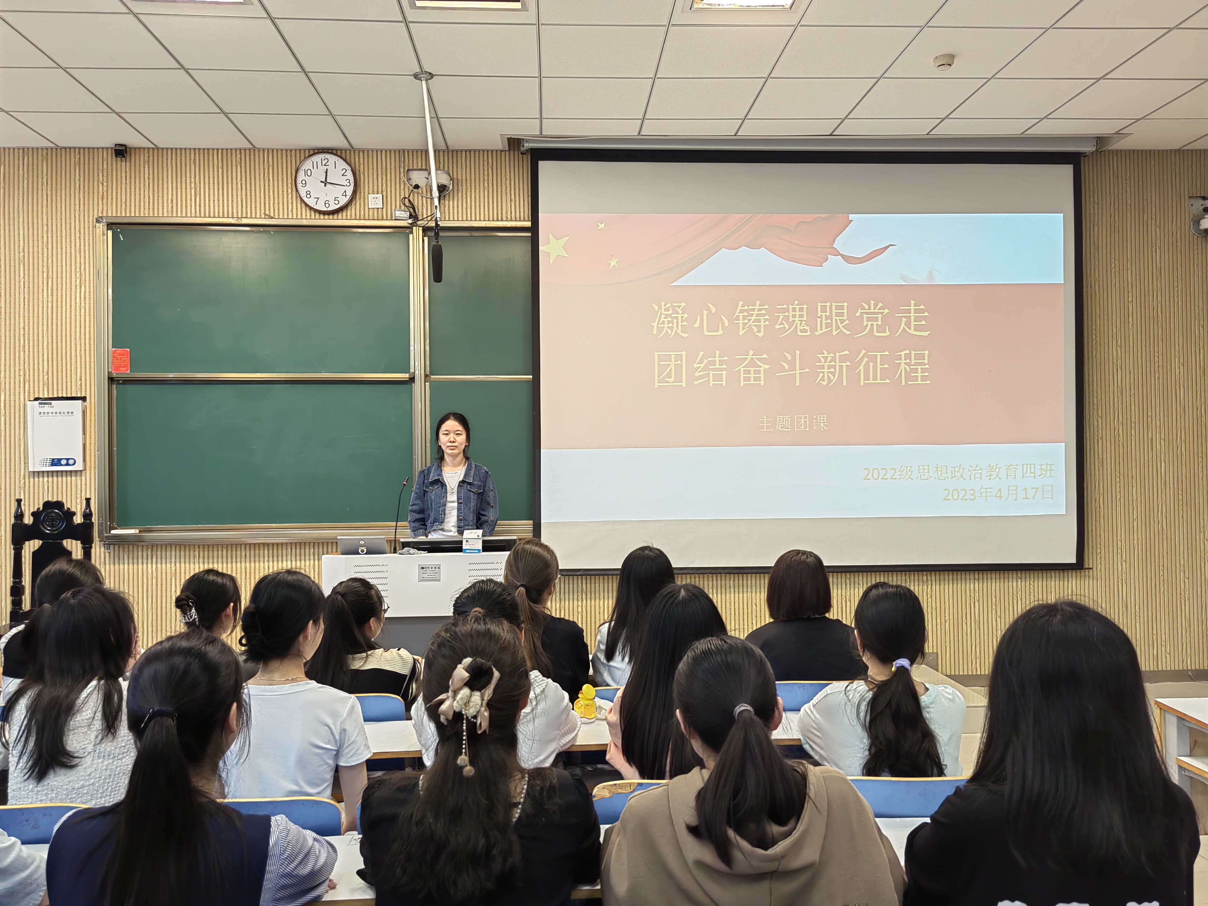 4月17日下午,太阳集团tyc59972022级思想政治教育四班在社科楼515教室召开“凝心铸魂跟党走,团结奋斗新征程”主题团课,我院2022级思想政治教育四班全体同学参与本次团课。团课由团支书牛志杰主持。