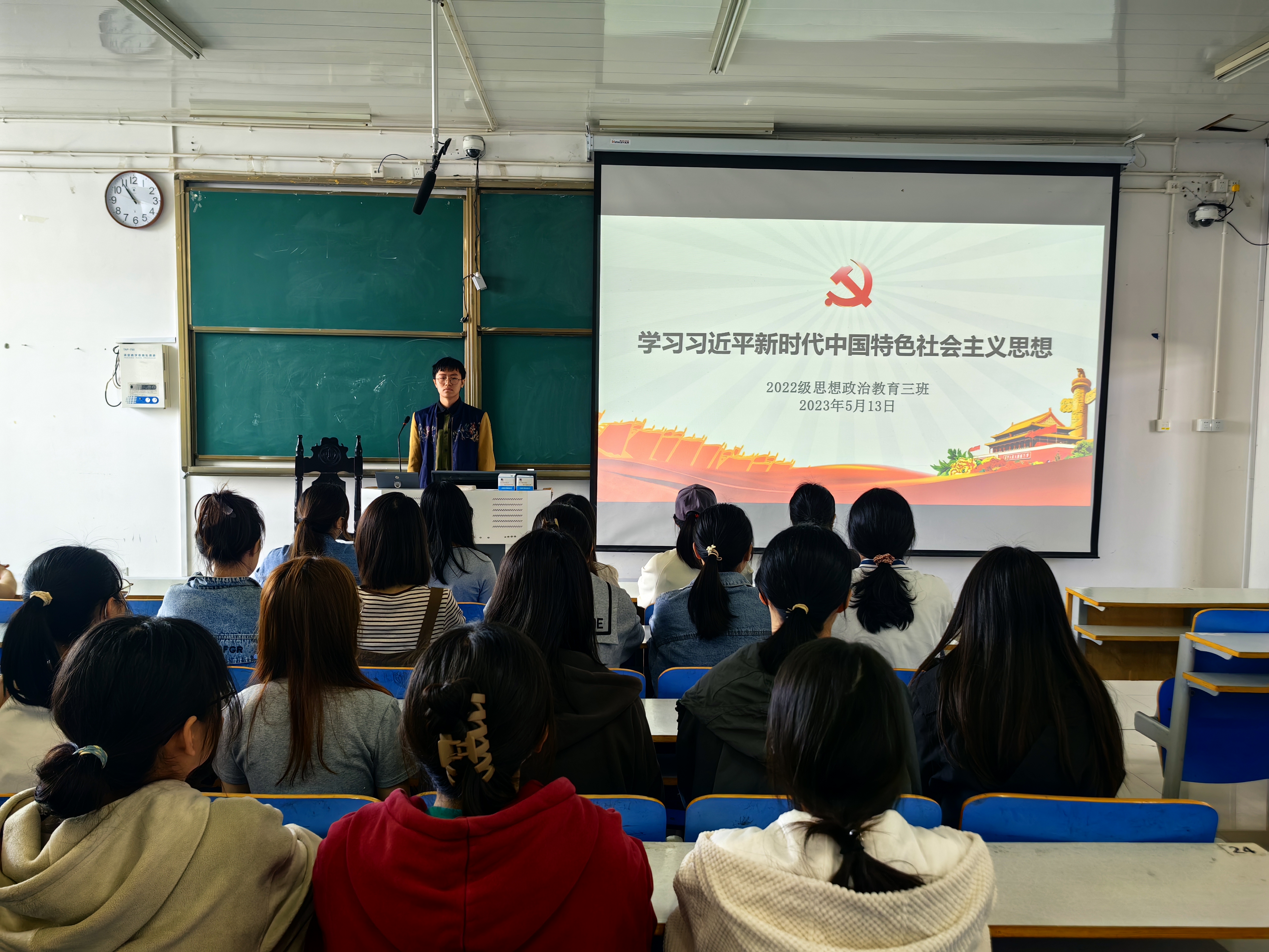 5月13日下午,太阳集团tyc59972022级思想政治教育三班在社科楼515教室召开学习习近平新时代中国特色社会主义思想主题团课。我院2022级思想政治教育三班全体成员共同参加此次团课。团课由团支书余浩洋主持。