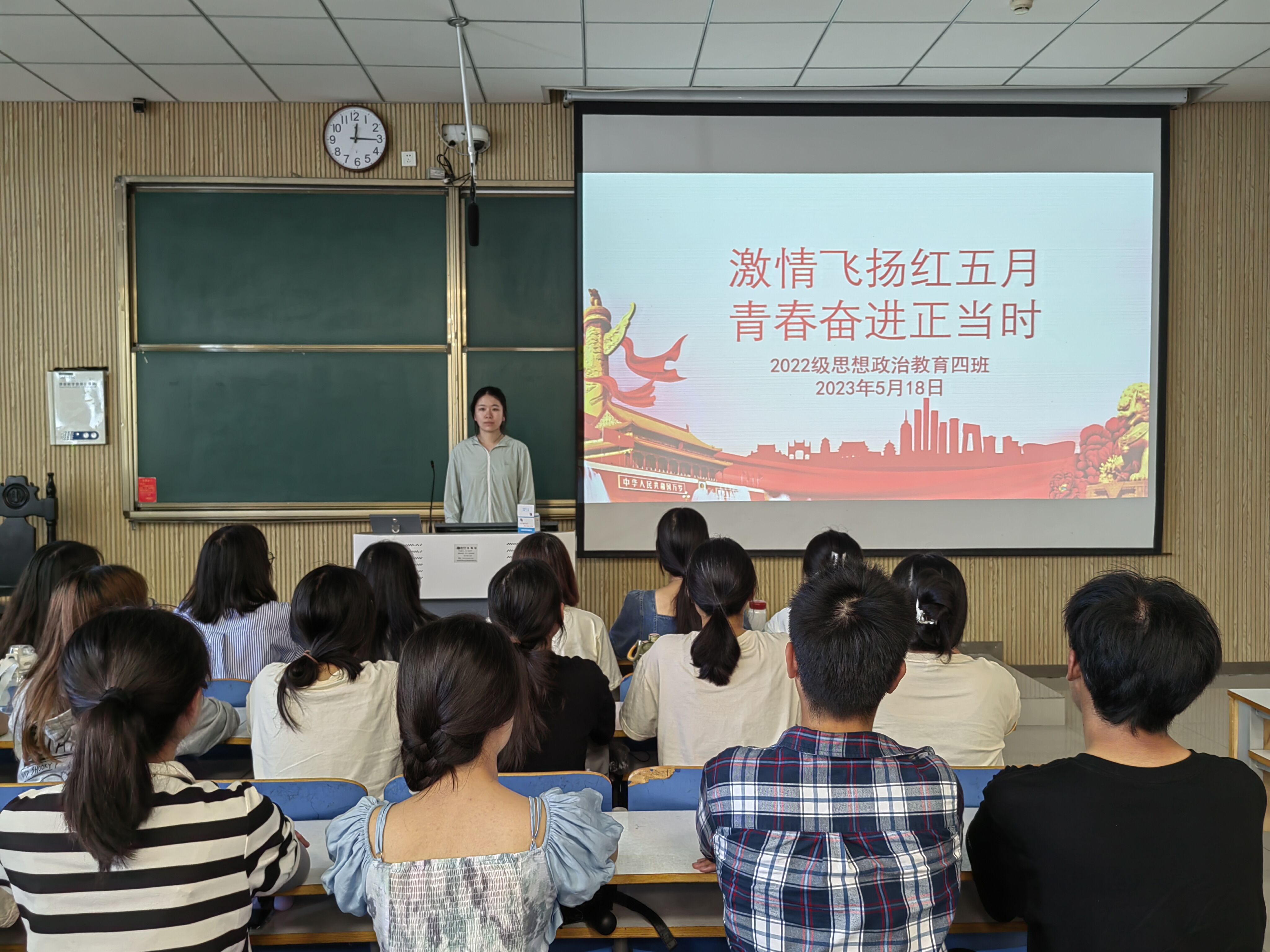 5月18日上午,太阳集团tyc59972022级思想政治教育四班在社科楼515教室召开“激情飞扬红四月,青春奋进正当时”主题团课,我院2022级思想政治教育四班全体同学参与本次团课。团支书牛志杰主持团课。