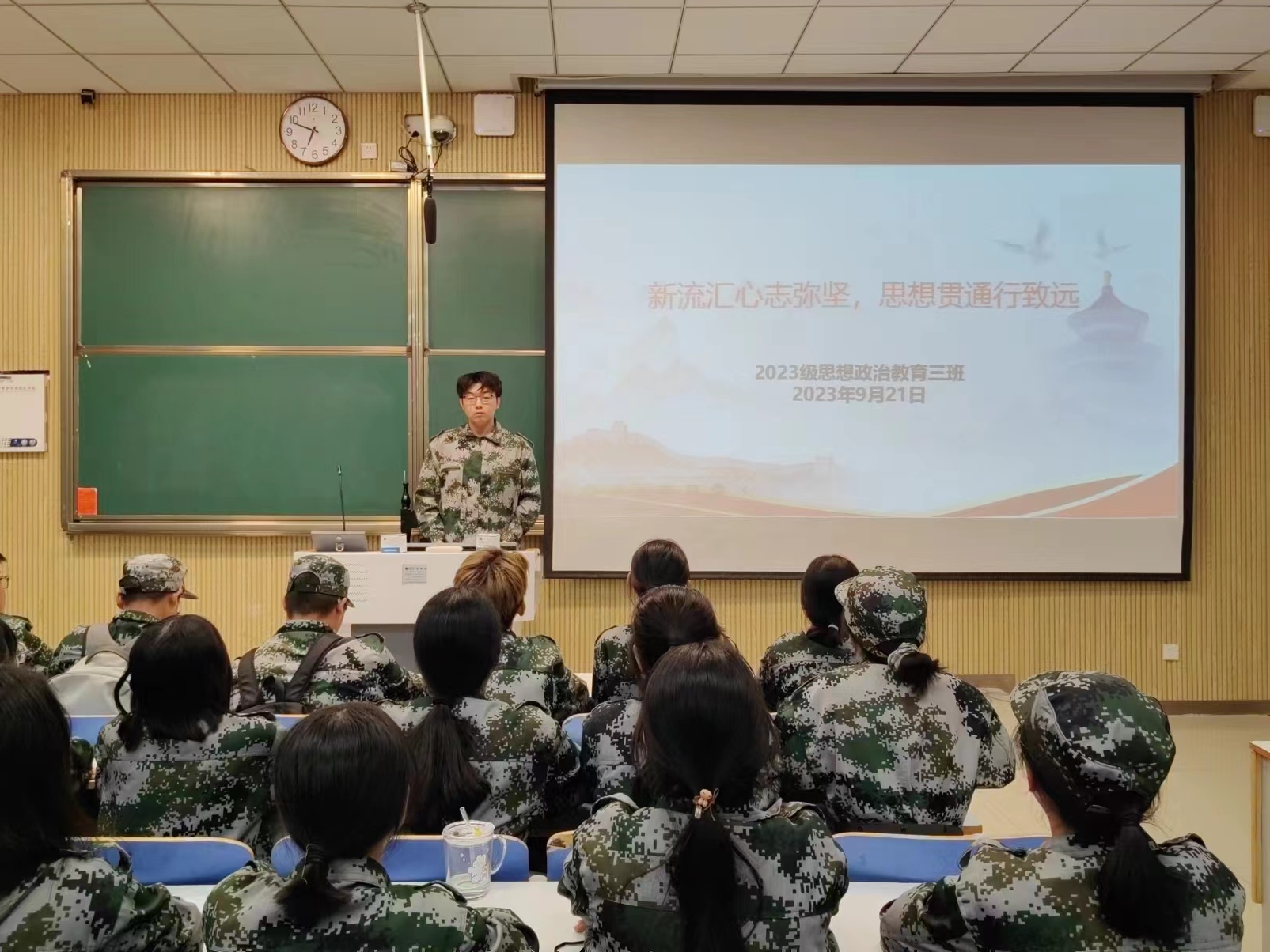9月21日上午,太阳集团tyc59972023级思想政治教育三班在社科楼515教室召开“新流汇心志弥坚,思想贯通行致远”主题团课。2023级思想政治教育三班全体成员参加此次团课。团课由班级负责人郝瀚主持。