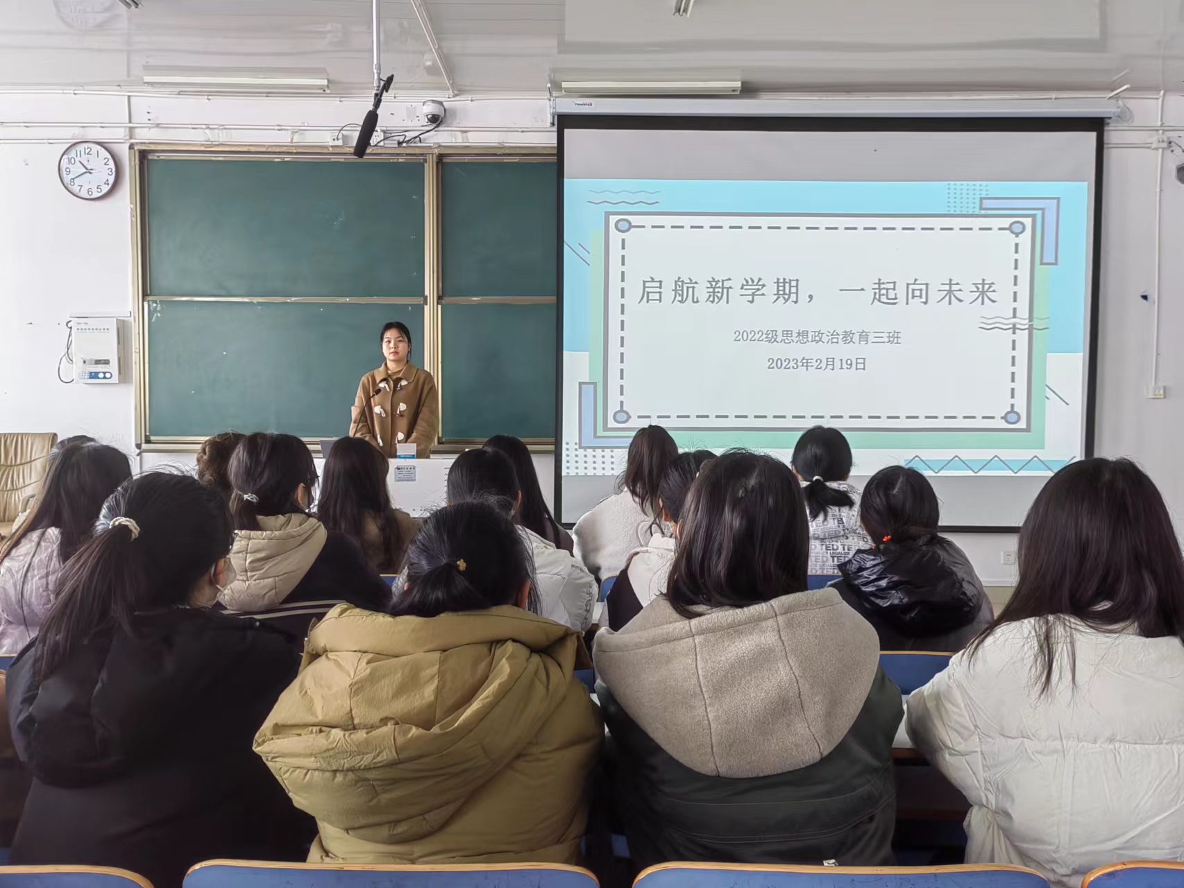 青春起航,素履所往。2月23日上午,太阳集团tyc59972022级思想政治教育三班在社科楼514教室召开“启航新学期,一起向未来”主题班会。我院2022级思想政治教育三班全体成员共同参加班会,班会由副班长雷露露主持。