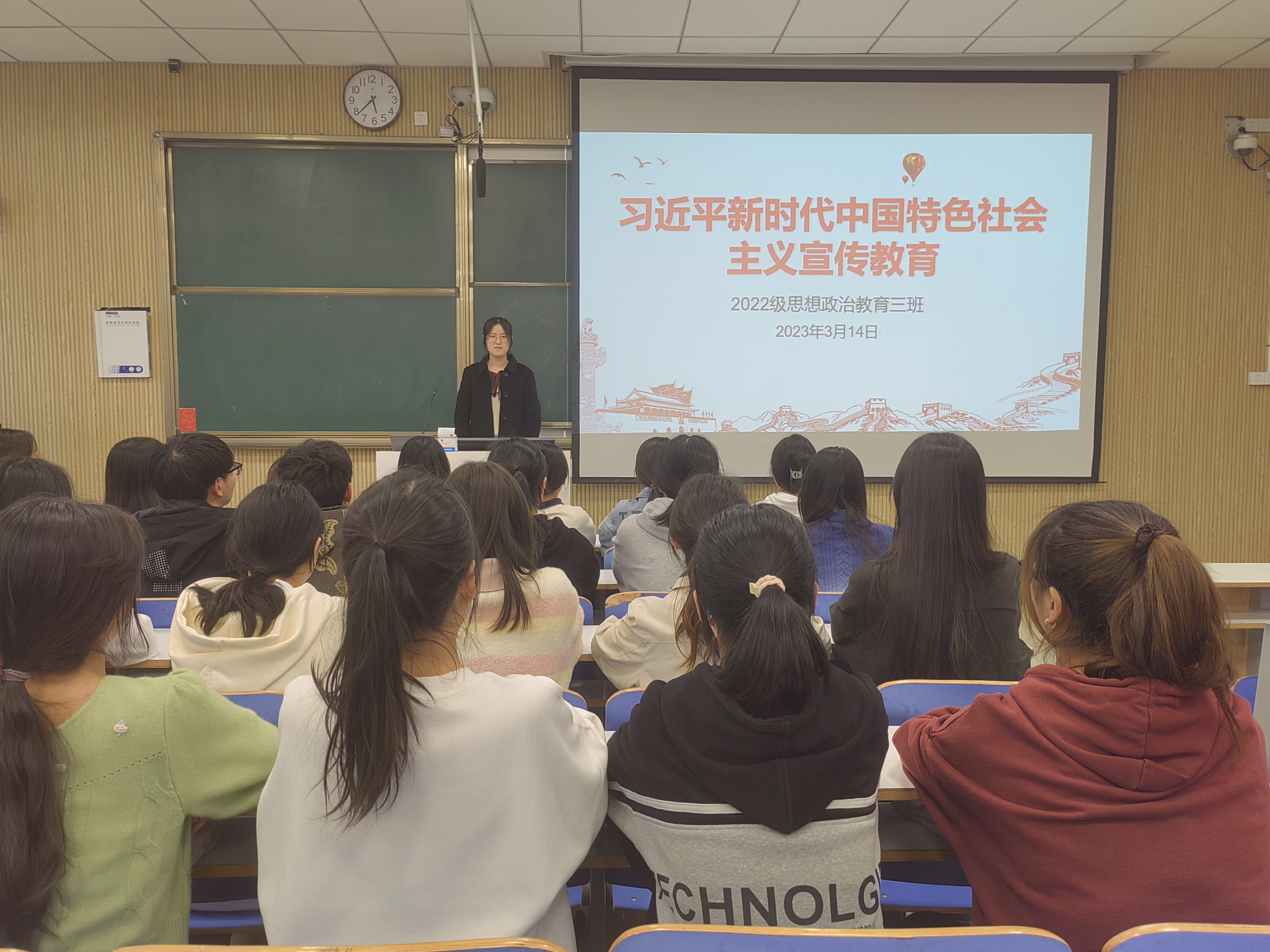 3月14日下午,太阳集团tyc59972022级思想政治教育三班在社科楼515教室召开习近平新时代中国特色社会主义思想宣传教育主题班会。我院2022级思想政治教育三班全体成员共同参加此次班会。班会由组织委员武文雪主持。