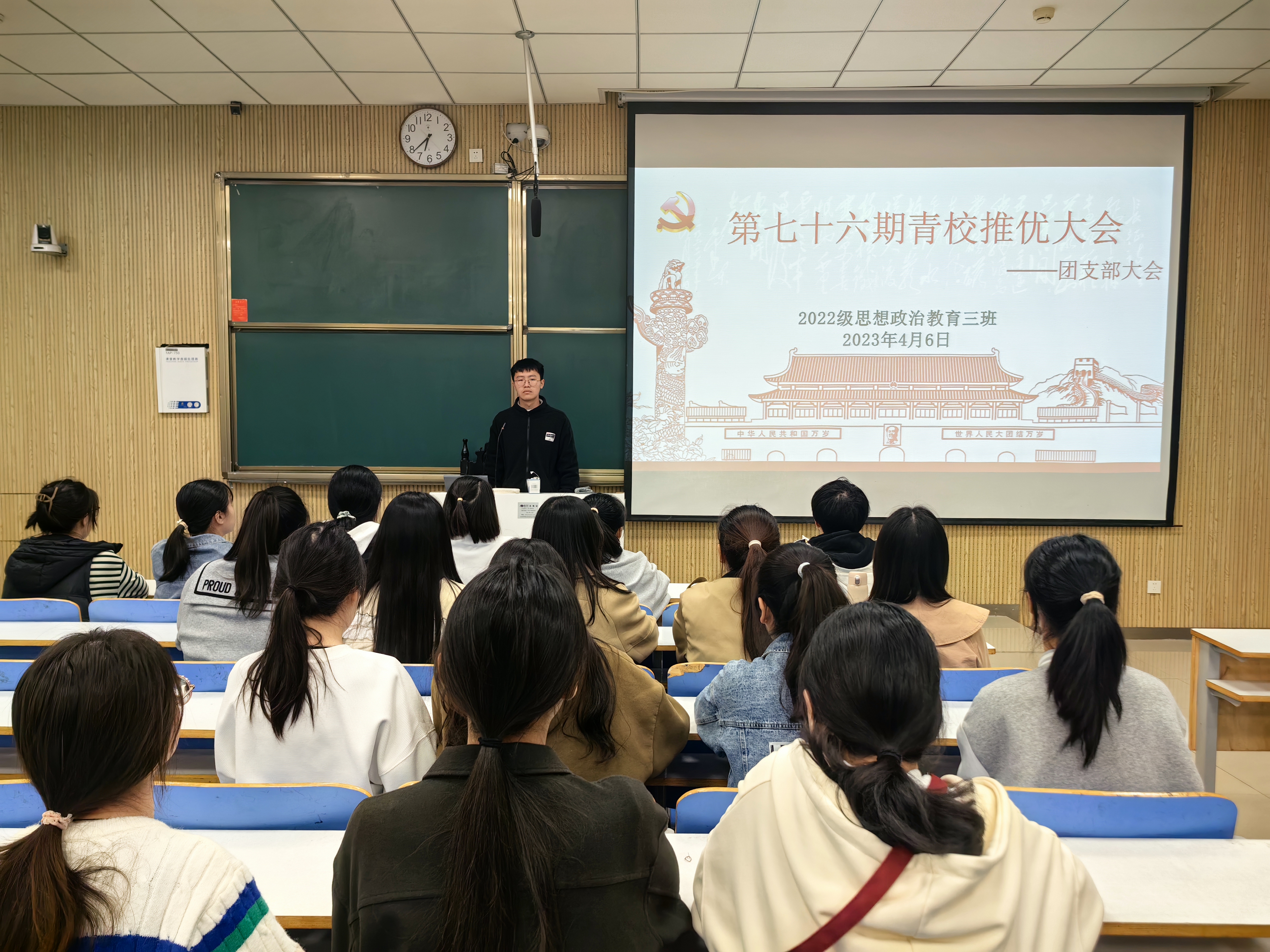 4月6日下午,太阳集团tyc59972022级思想政治教育三班在社科楼515教室召开青校推优大会。我院2022级思想政治教育三班班主任吴梦云以及三班全体同学共同参与此次大会。大会由团支书余浩洋主持。