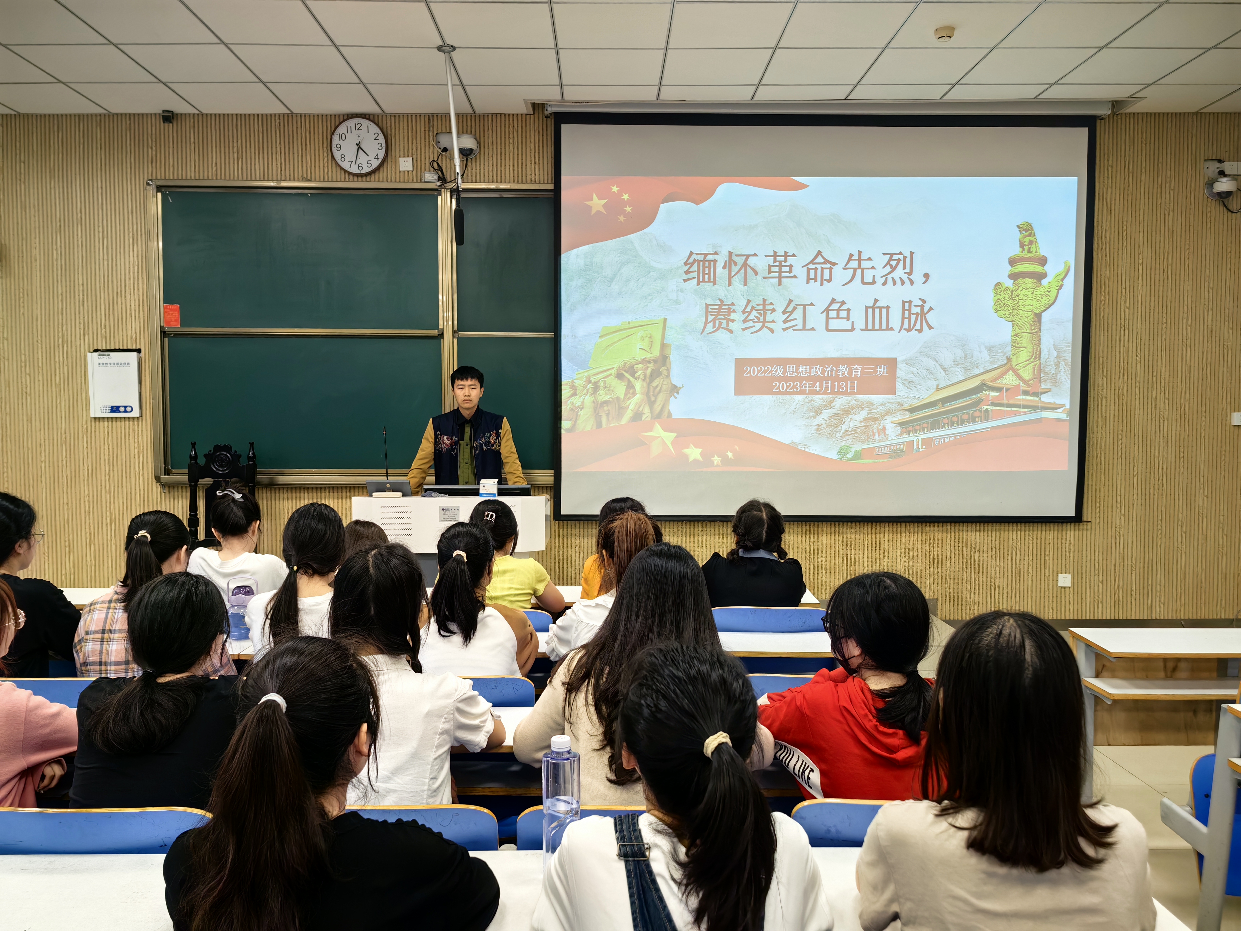 为传承红色基因,弘扬革命精神,4月13日下午,太阳集团tyc59972022级思想政治教育三班在社科楼515教室召开“缅怀革命先烈,赓续红色血脉”主题团课。我院2022级思想政治教育三班全体成员共同参与此次主题团课。团课由团支书余浩洋主持。