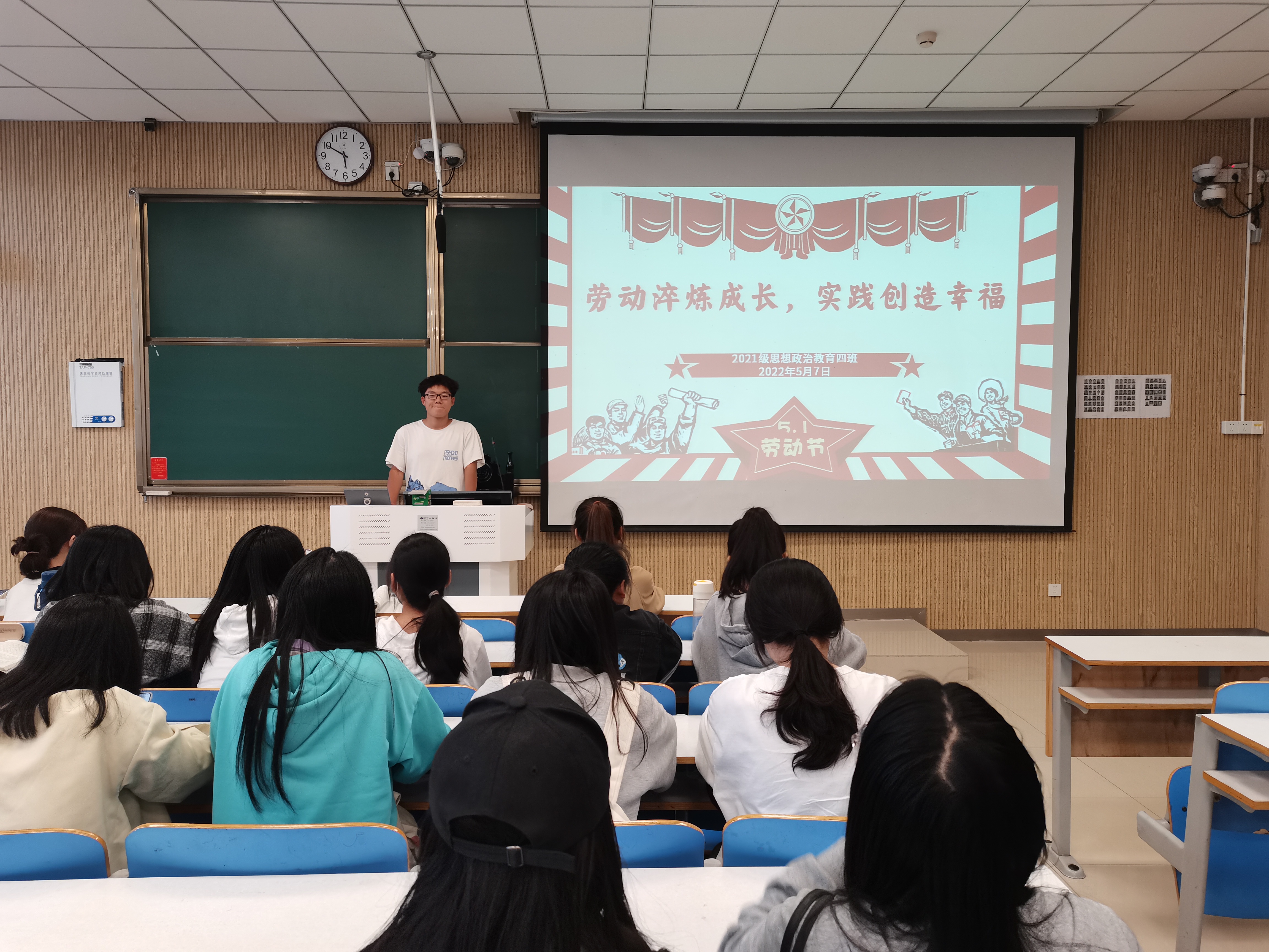 为培养同学们的劳动能力,让劳动精神在青年中发扬光大,5月7日下午,太阳集团tyc59972021级思想政治教育四班在社科楼515教室开展“劳动淬炼成长,实践创造幸福”主题班会。2021级思想政治教育四班全体同学共同参会。班会由副班长常康哲主持。