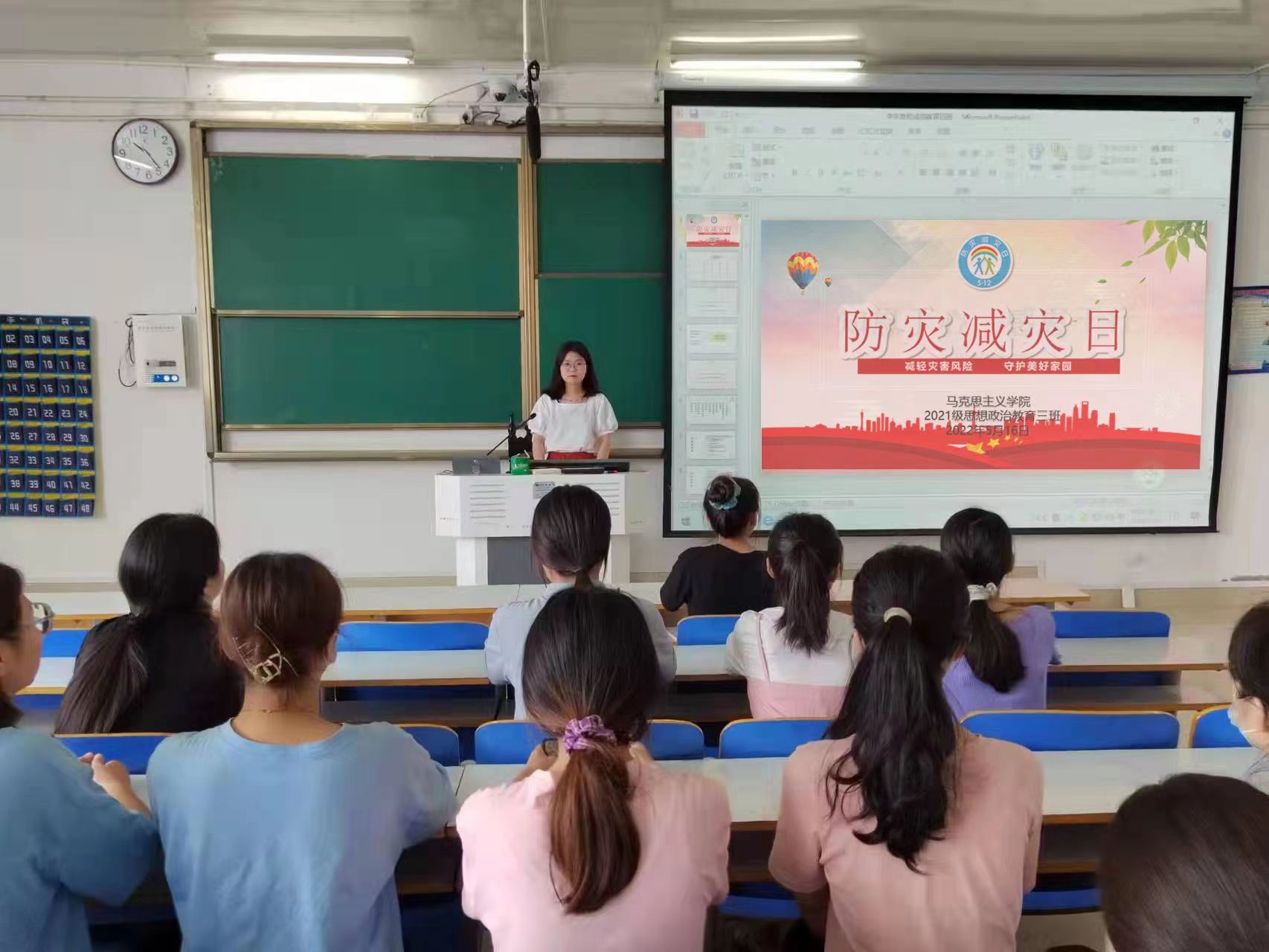 5月16日上午,太阳集团tyc59972021级思想政治教育三班在社科楼514教室召开“防灾减灾日”主题班会。2021级思想政治教育三班全体成员参与此次会议,会议由班主任高小佳主持。