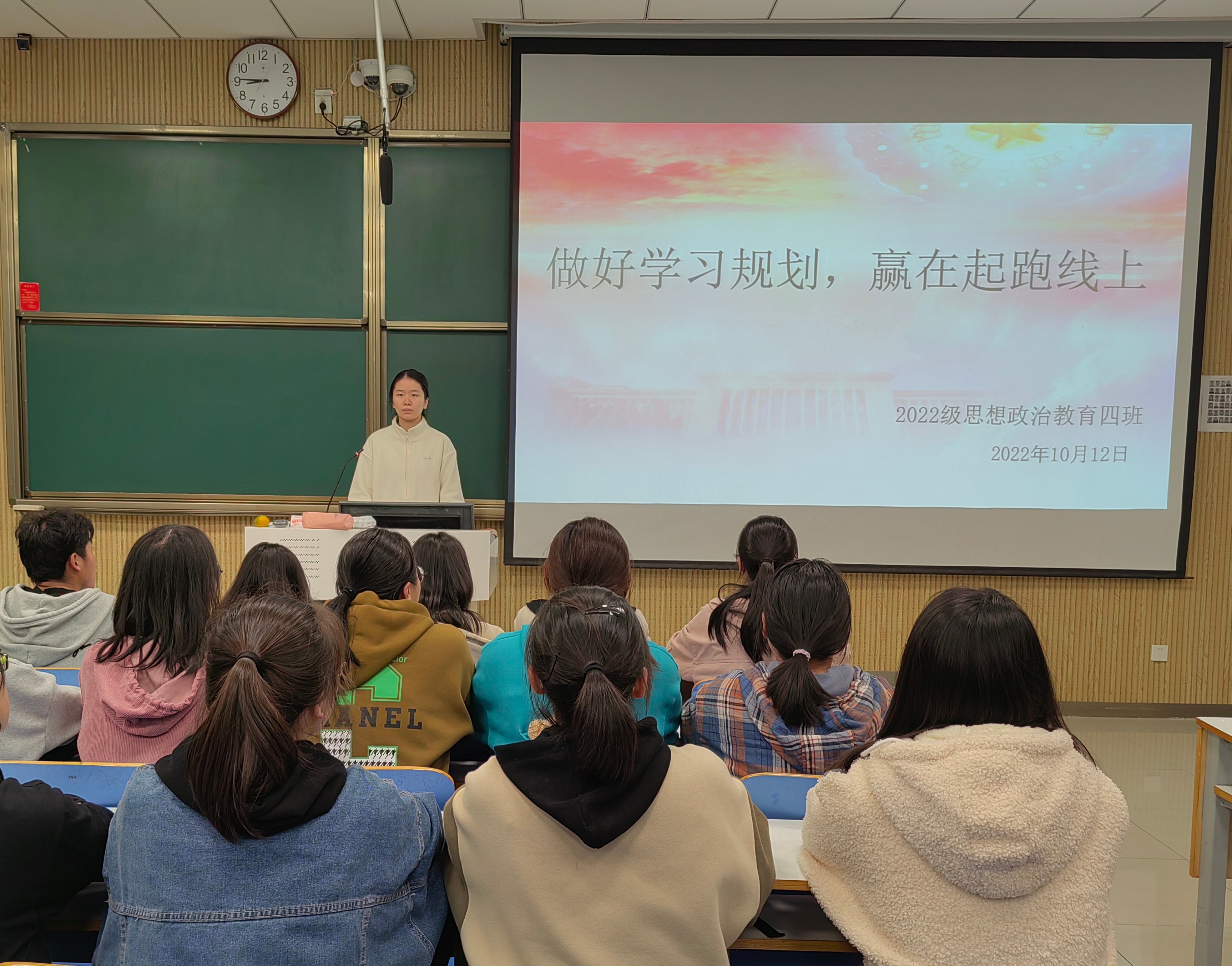 10月12日下午,太阳集团tyc59972022级思想政治教育四班在社科楼515教室召开“做好学习规划,赢在起跑线上”主题班会。班会由班长牛志杰主持召开。