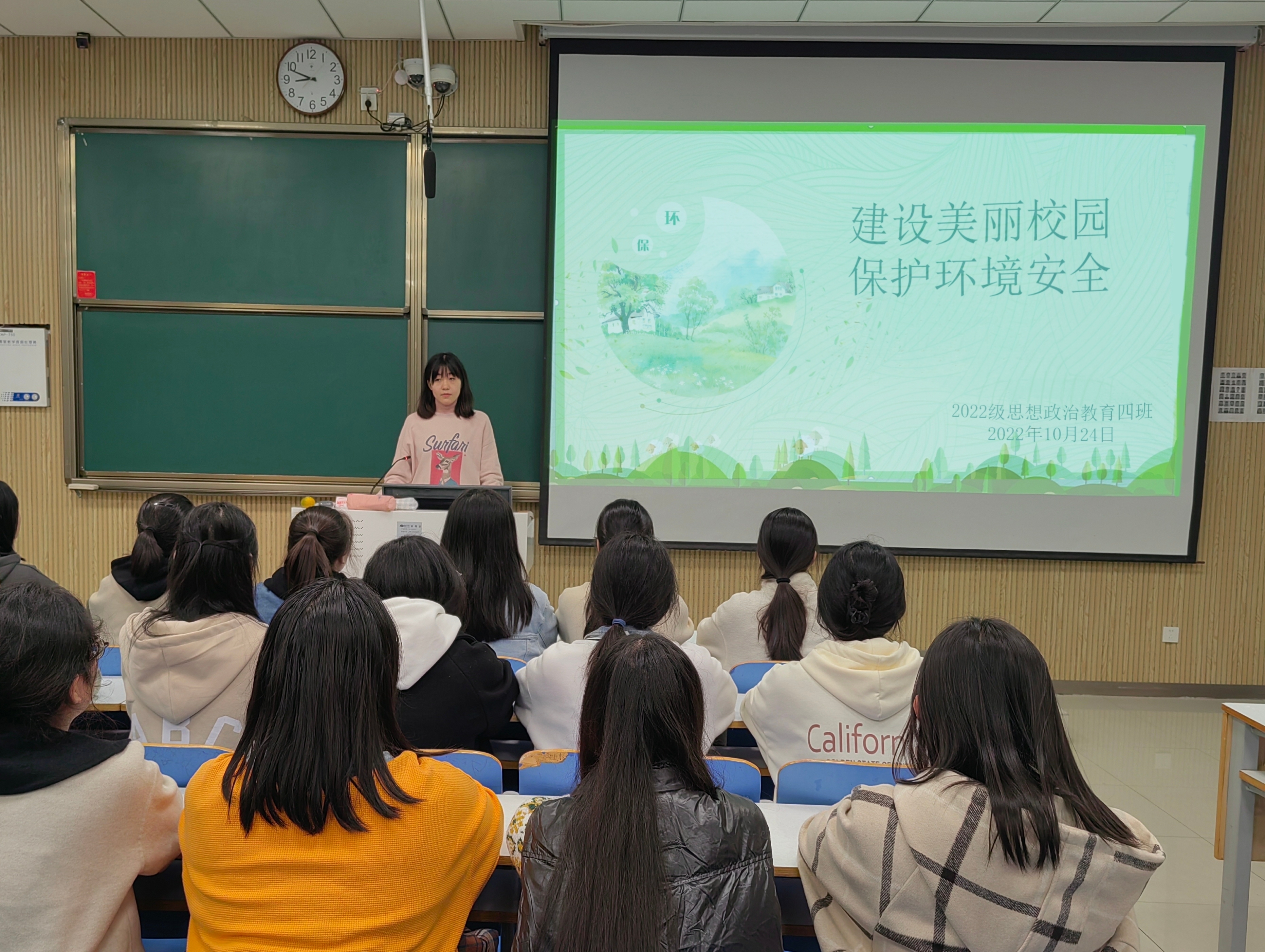 为贯彻绿色发展理念,提高同学们的环保意识,10月24日下午,太阳集团tyc59972022级思想政治教育四班在社科楼515教室召开“建设美丽校园,保护环境安全”主题班会。会议由文体委员周可盈主持。