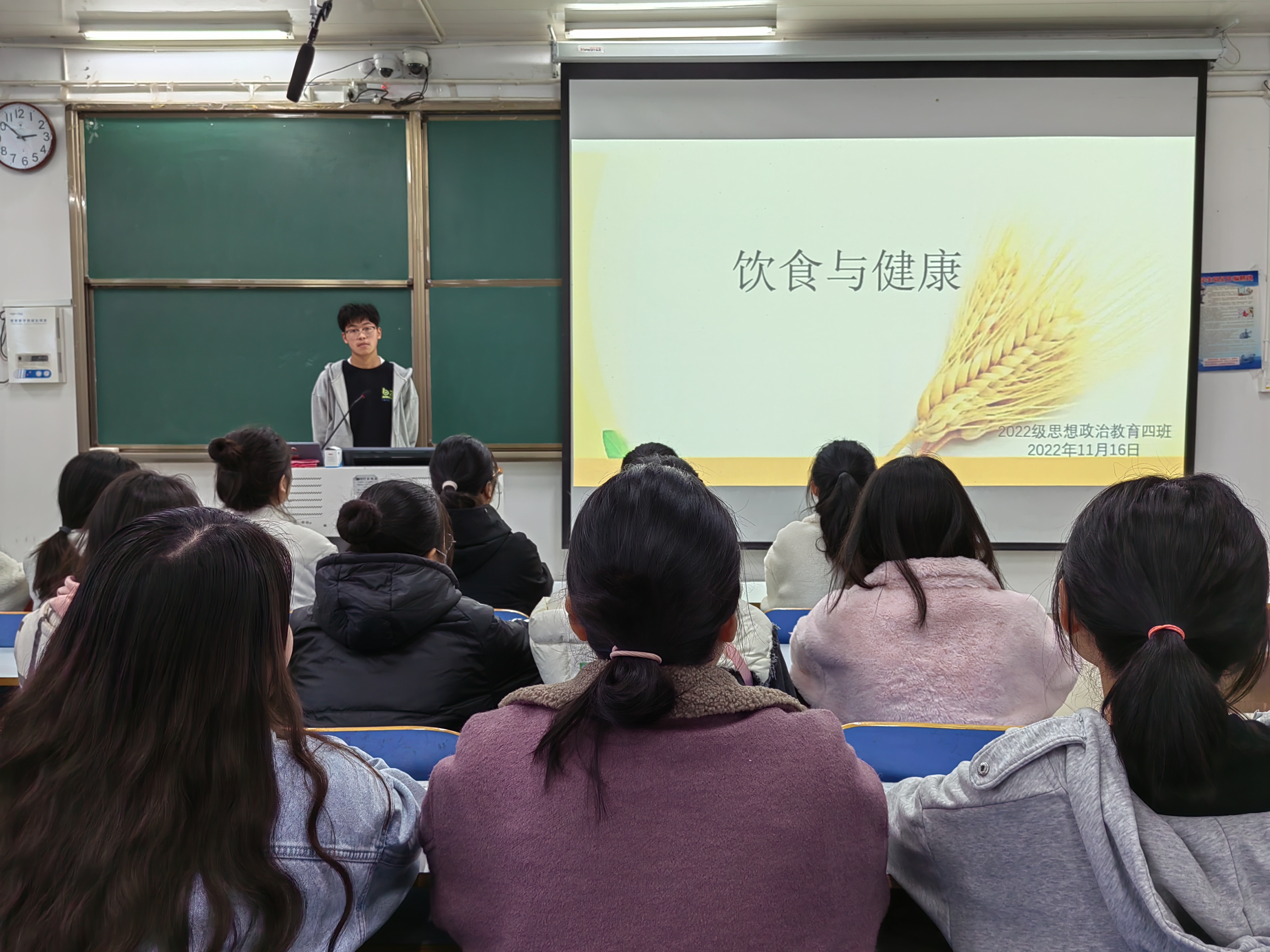 为增强同学们饮食健康意识,树立健康饮食观念,11月16日下午,太阳集团tyc59972022级思想政治教育四班在社科楼514教室召开“健康饮食”主题班会。太阳集团tyc59972022级思想政治教育四班全体同学参与班会。劳动卫生委员李烁主持此次班会。