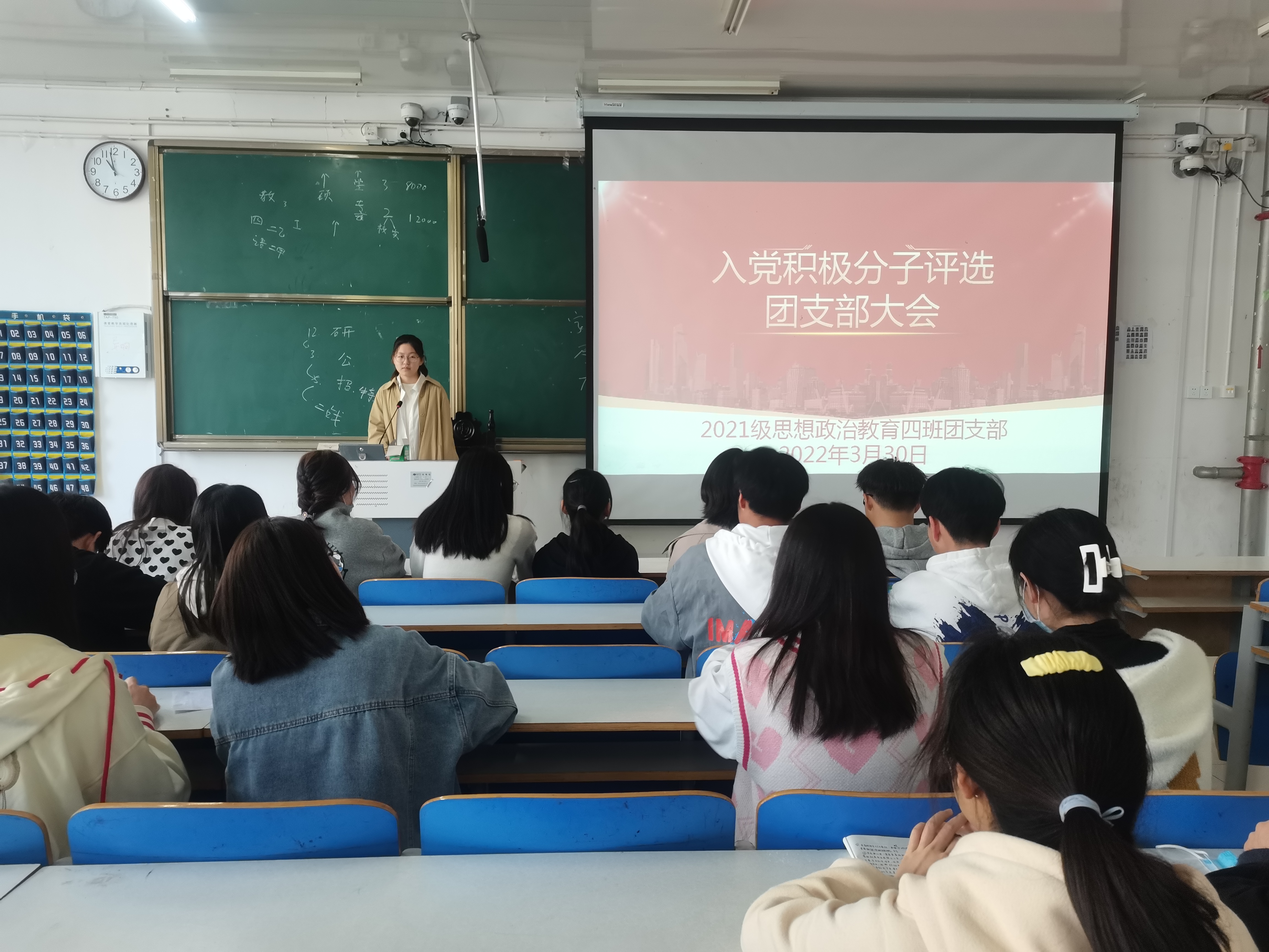 3月30日上午,太阳集团tyc59972021级思想政治教育四班在社科楼516教室召开入党积极分子评选团支部大会。2021级思想政治教育四班全体团员参加本次会议。会议由团支书刘珂含主持。