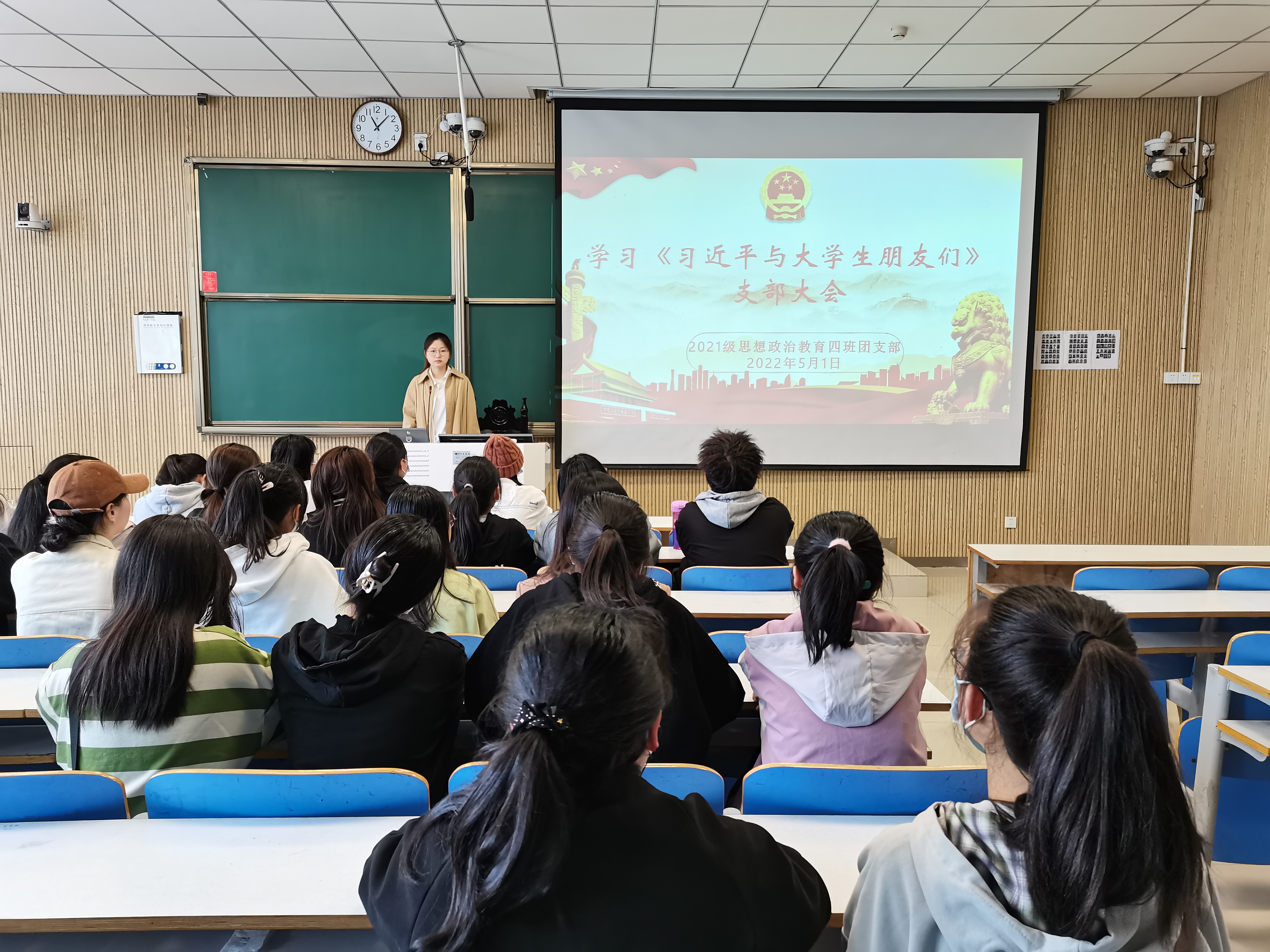 为追寻领袖足迹,聆听时代声音,5月1日上午,太阳集团tyc59972021级思想政治教育四班在社科楼515教室开展学习《习近平与大学生朋友们》支部大会。2021级思想政治教育四班全体团员共同参加本次会议。会议由团支书刘珂含主持。