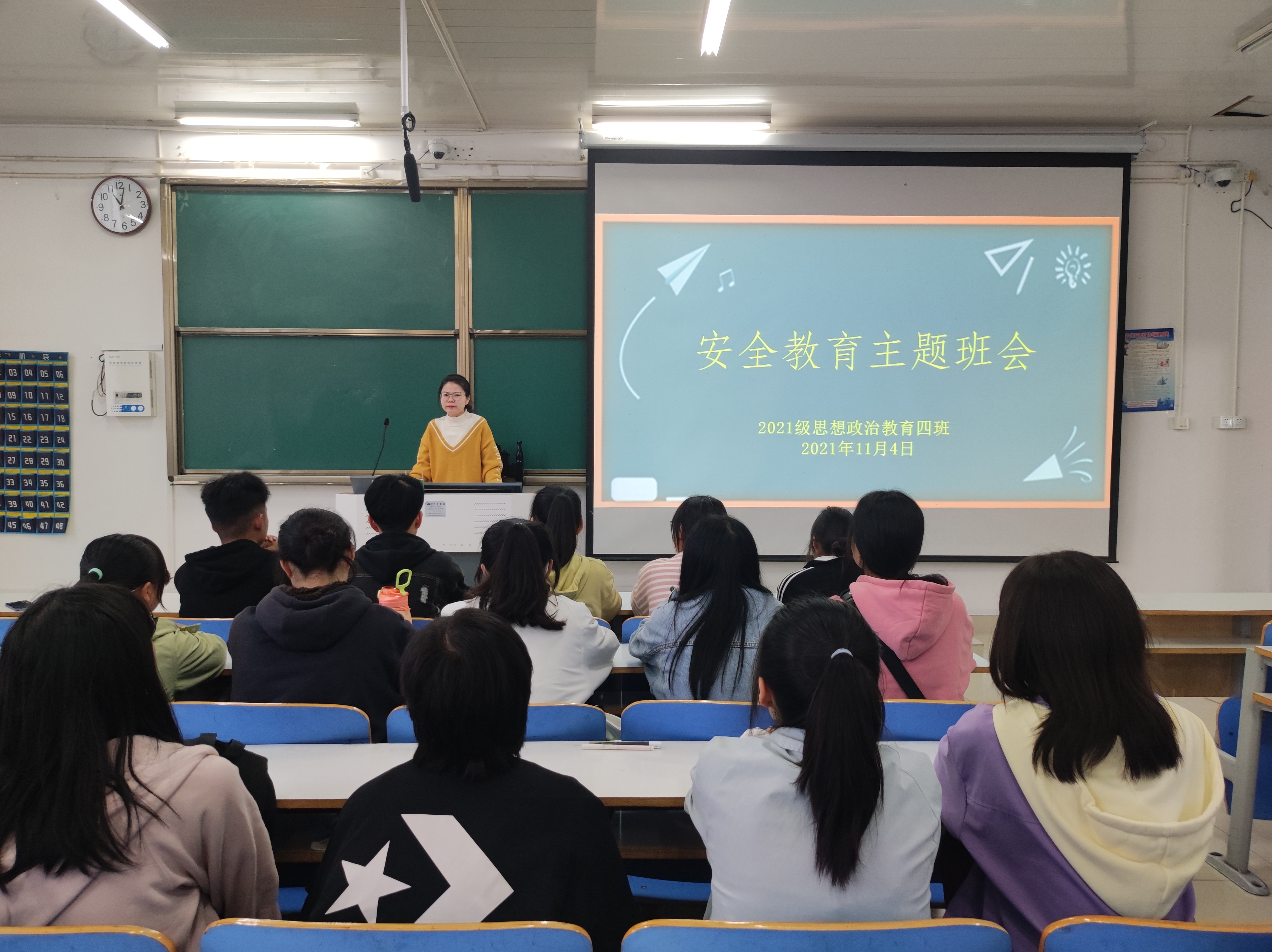 根据《关于开展学生安全隐患大排查工作的通知》精神,11月4号上午,太阳集团tyc59972021级思想政治教育四班安全教育主题班会在社科楼514教室开展。2021级思想政治教育四班全体同学参加了本次班会。班会由辅导员高小佳主持。