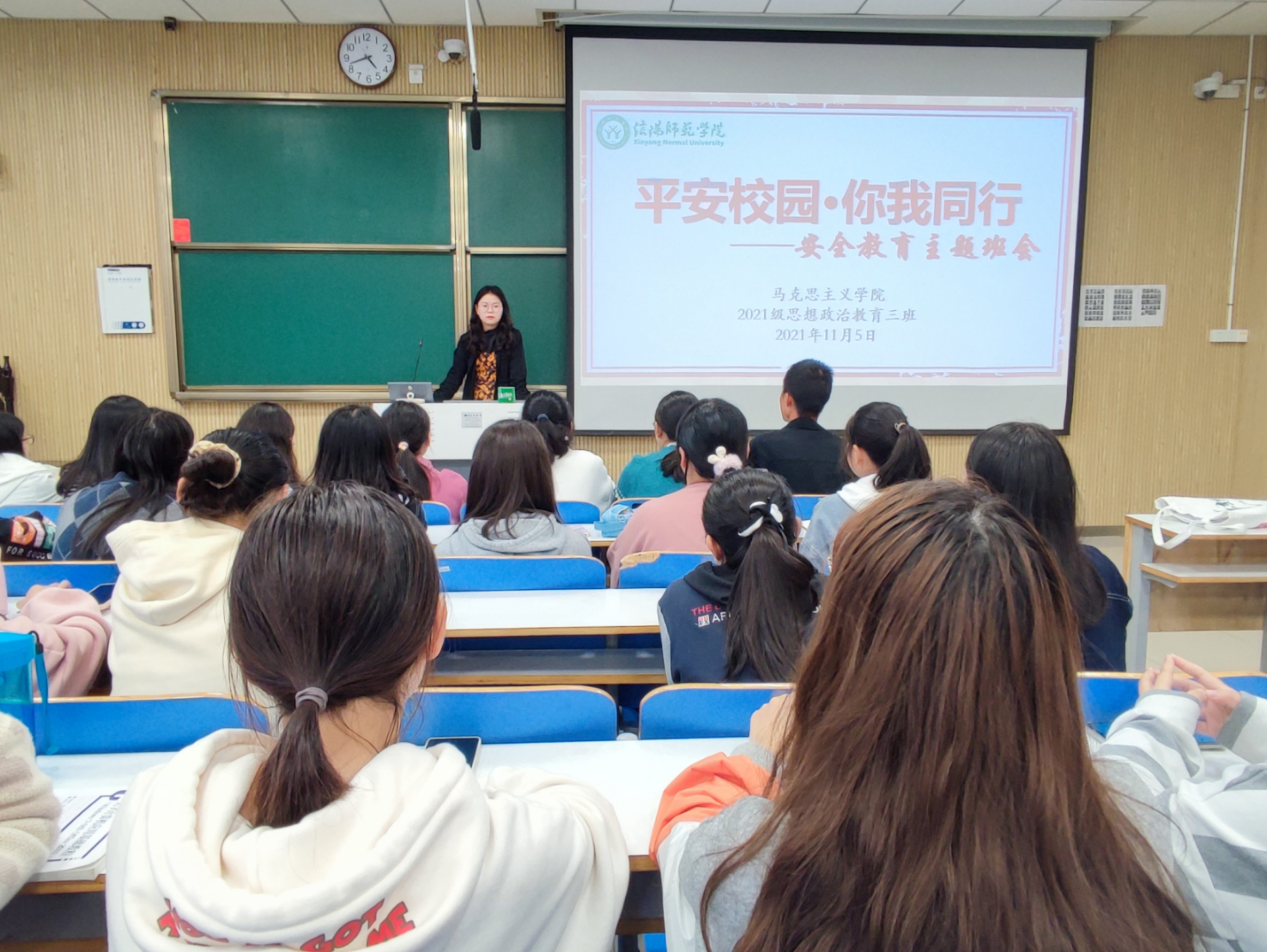 安全无小事,人人讲安全。根据《关于开展学生安全隐患大排查工作的通知》的文件精神,11月5日下午,太阳集团tyc59972021级思想政治教育三班在社科楼515教室组织召开安全教育主题班会。班主任高小佳以及2021级思想政治教育三班全体成员共同参加,班会由班主任高小佳主持。