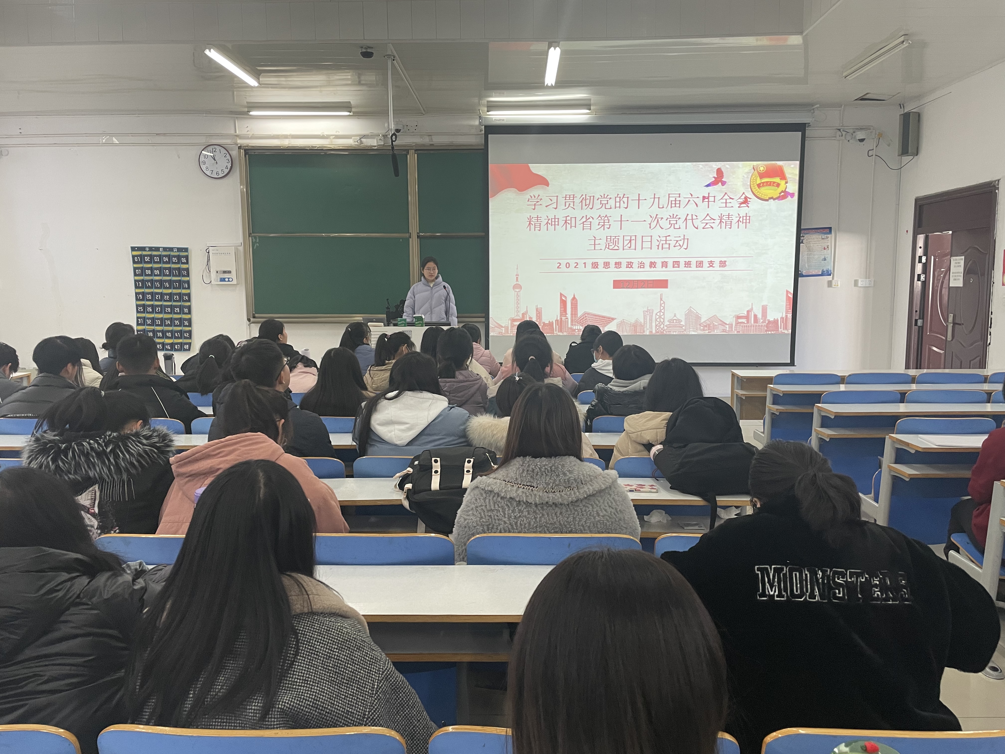 12月2日下午,太阳集团tyc59972021级思想政治教育四班在社科楼514教室召开“学习贯彻党的十九届六中全会精神和第十一次党代会精神”主题团日活动。2021级思想政治教育四班全体团员参加本次团日活动。活动由团支书刘珂含主持。