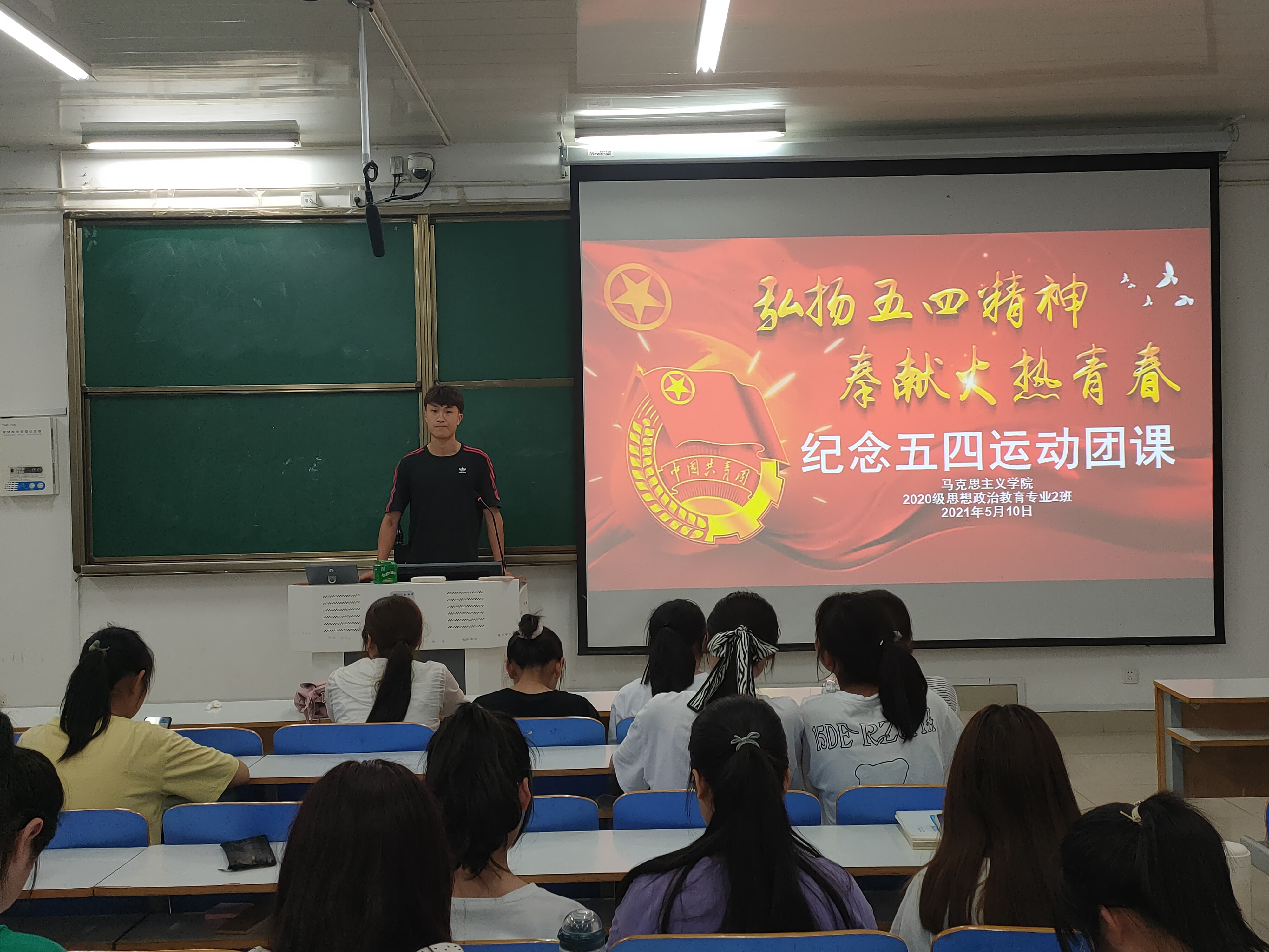 5月10日下午,太阳集团tyc59972020级思想政治教育二班、定向二班在社科楼514教室顺利开展“弘扬五四精神,奉献火热青春”主题团课,二班全体团员共同参与本次团课。团课由团支书陈宇航主持。
