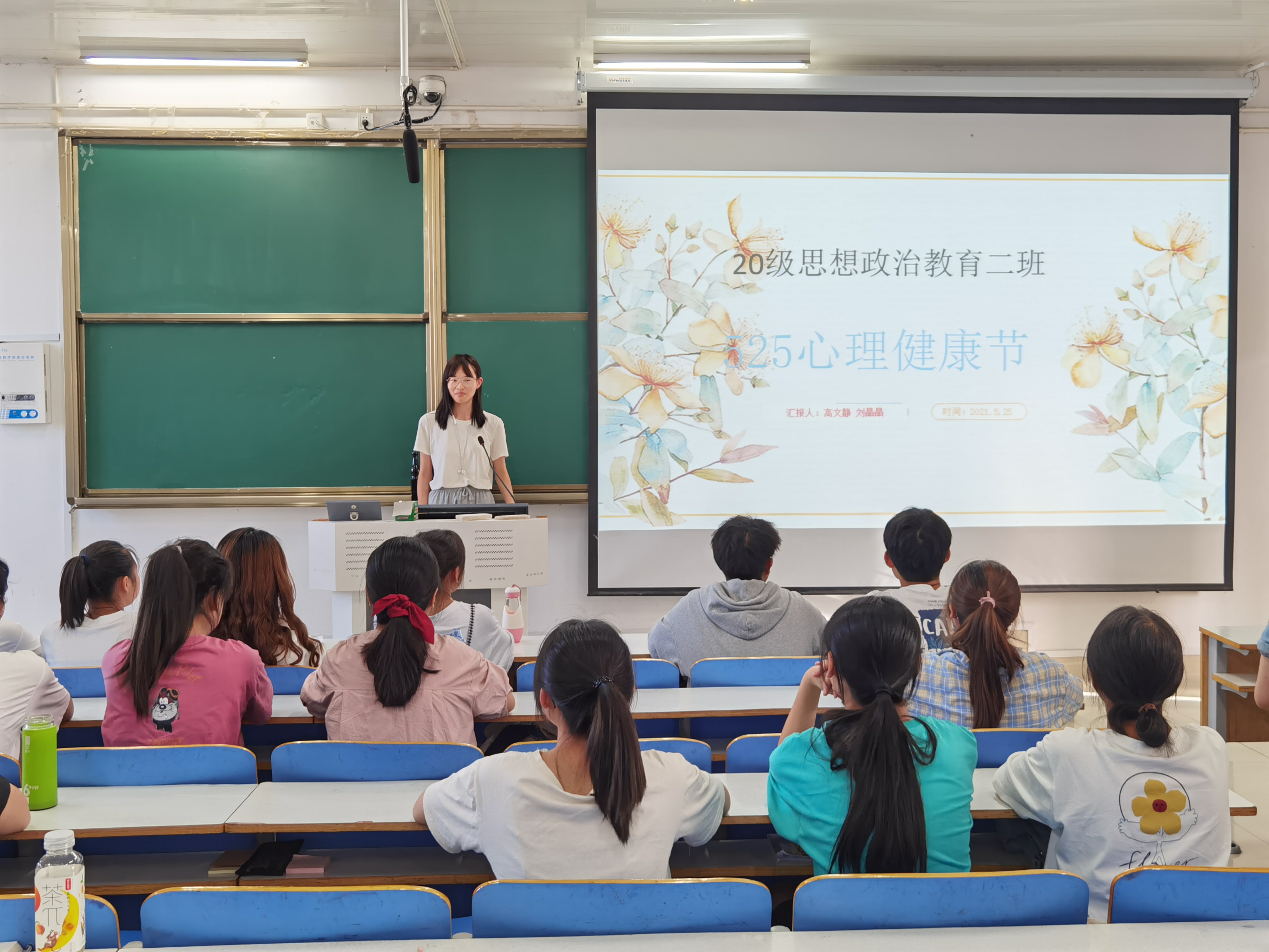 为大力营造“525,我爱我”节日氛围,进一步提高我班同学对自身心理健康的关注程度,5月25日下午,太阳集团tyc59972020级思想政治教育二班、定向二班“525心理健康节”主题班会在社科楼514教室顺利召开。二班、定向二班全体学生参与班会。班会由心理委员刘晶晶、高文静主持。