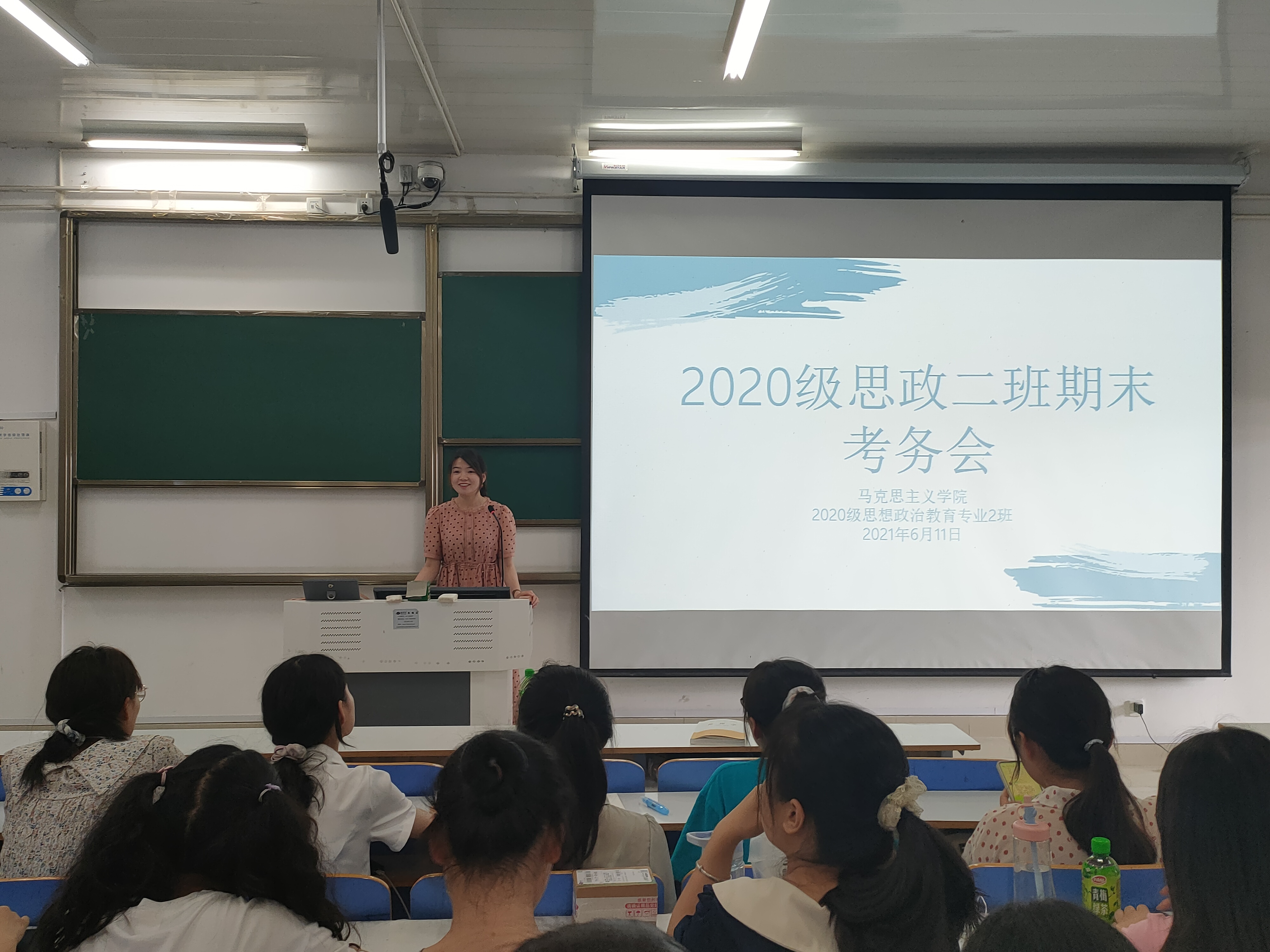 为严肃期末考试纪律,帮助我班同学制定科学合理的复习计划,6月11日下午,太阳集团tyc59972020级思想政治教育二班、定向二班期末考务会在社科楼514教室顺利召开。辅导员陶青青及二班、定向二班全体同学参与本次班会。会议由辅导员陶青青主持。