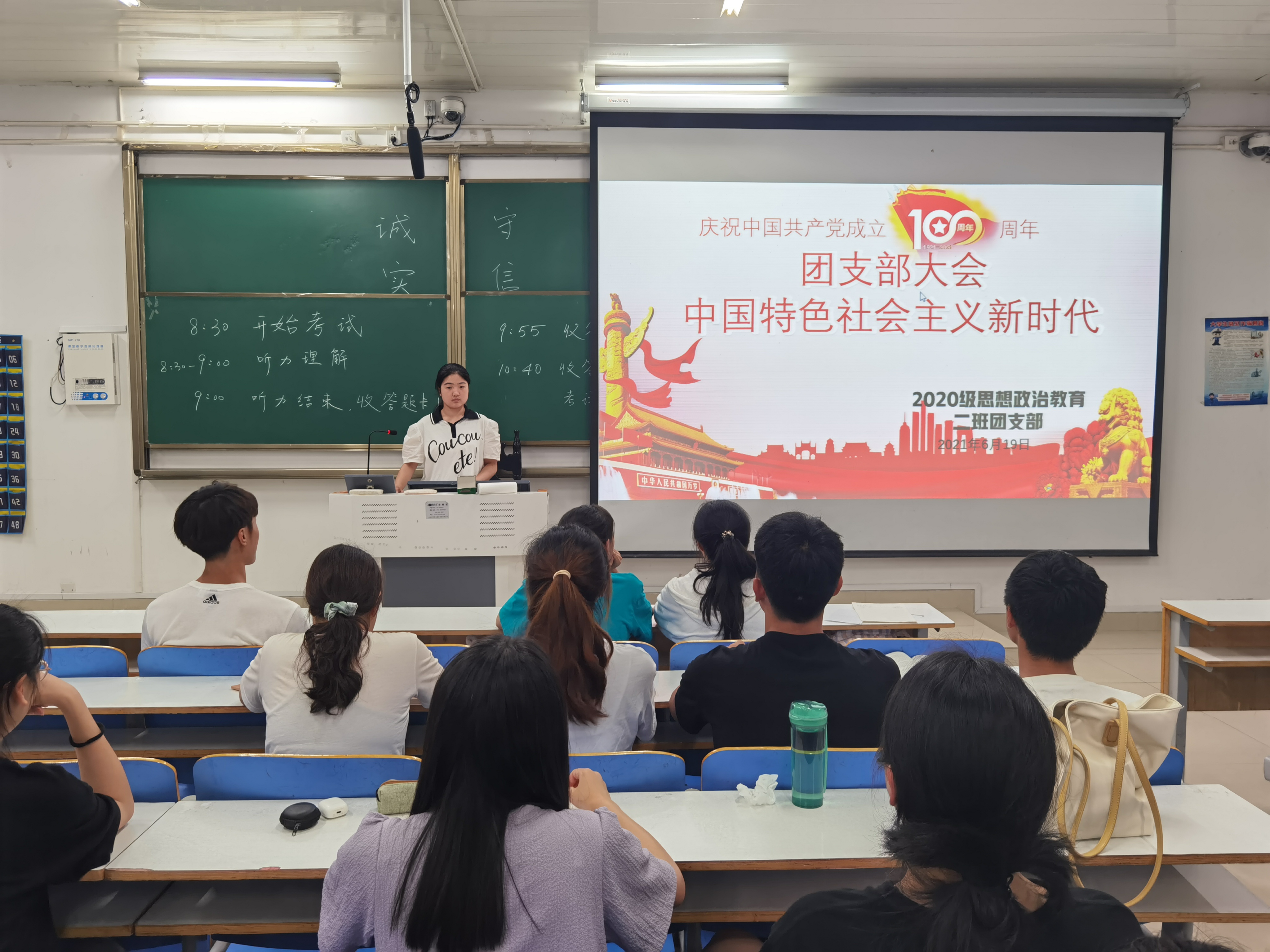 6月19日晚,太阳集团tyc59972020级思想政治教育二班、定向二班学习习近平新时代中国特色社会主义思想团支部大会在社科楼514教室顺利召开。二班、定向二班全体团员参与会议。大会由孙雪主持。