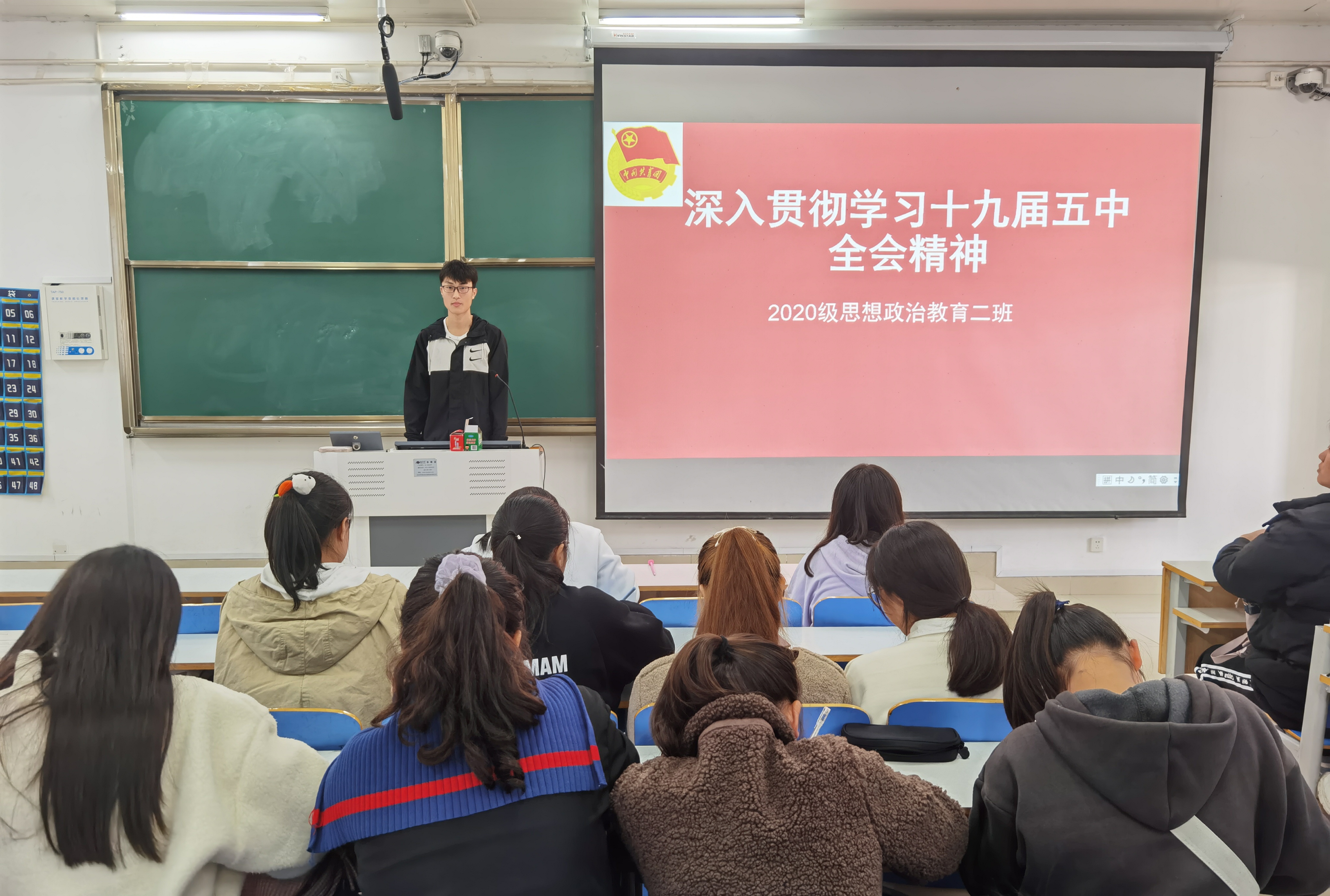 11月19日上午,我院2020级思想政治教育二班在社科楼514教室开展学习贯彻十九届五中全会精神团日活动,2020级思想政治教育二班全体学生共同参与本次活动。活动由团支书陈宇航主持。
