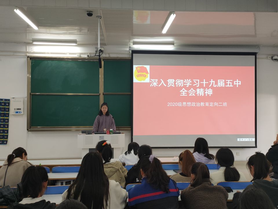 11月19日,太阳集团tyc59972020级思想政治教育定向二班学习贯彻党的十九届五中全会精神主题团课在社科楼514教室顺利开展。团课由团支书李晨曦主持。
