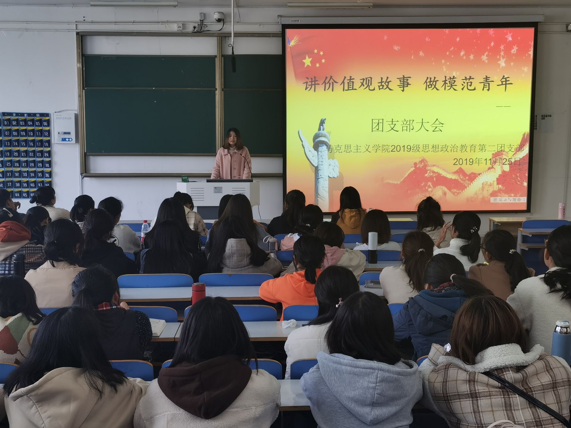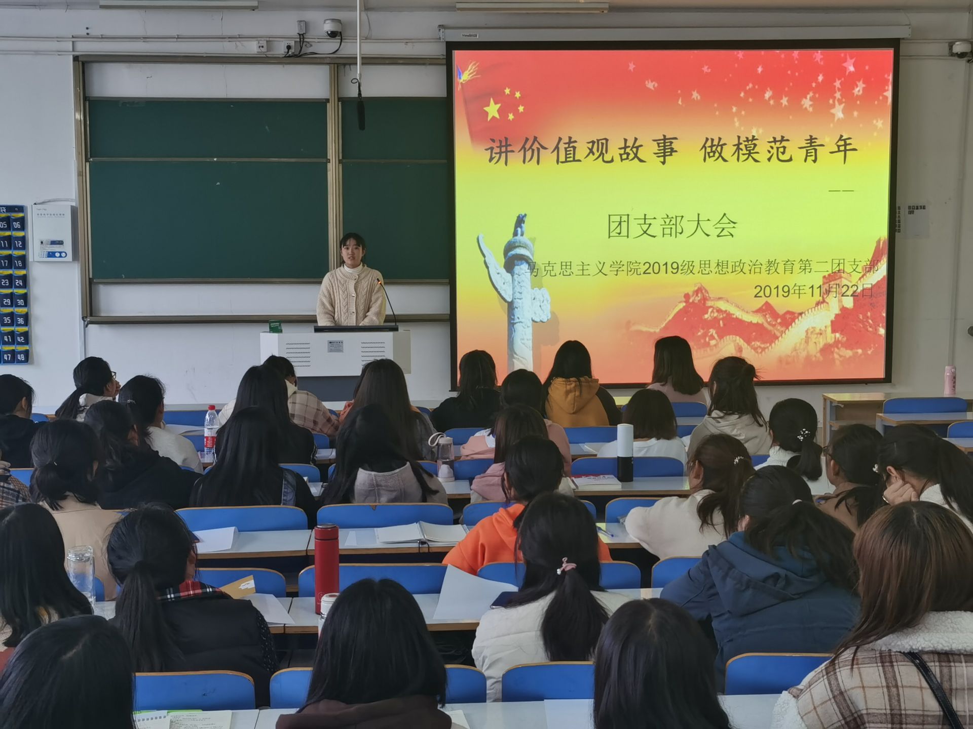 11月22日下午,太阳集团tyc59972019级思想政治教育第二团支部在社科楼516教室顺利召开“讲价值观故事,做模范青年”团支部大会。团委老师陶青青及太阳集团tyc59972019级思想政治教育第二团支部全体团员共同参会。会议由团支书孙雅娴主持。
