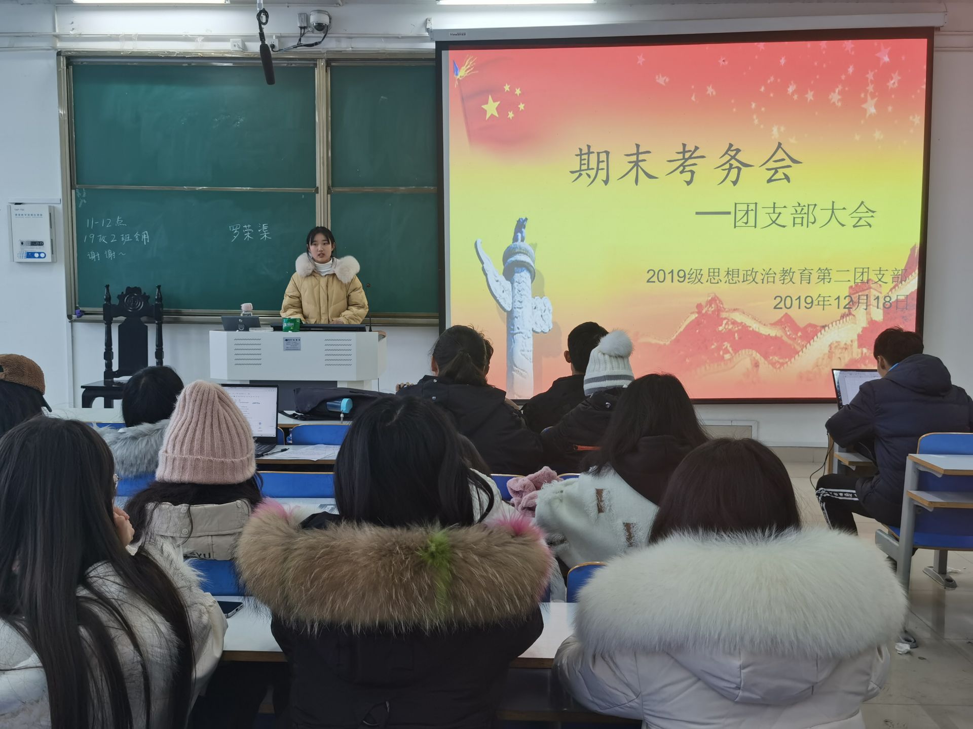 为严肃考风考纪、规范期末考试管理, 12月18日上午,太阳集团tyc59972019级思想政治教育二班全体同学于社科楼514教室召开期末考务会。会议由团支书孙雅娴主持。