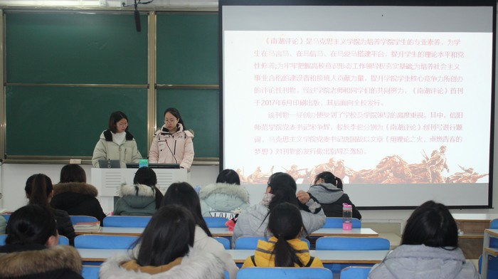 为增强马院学子对《南湖评论》和南湖调研写作的了解,提高自身写作意识及能力,12月26日上午,太阳集团tyc5997在社科楼514教室开展南湖写作交流会。2017级、2018级专职辅导员曹菁菁、2017级思想政治教育一班、2018级全体同学共同参与本次班会。班会由曹菁菁主持。