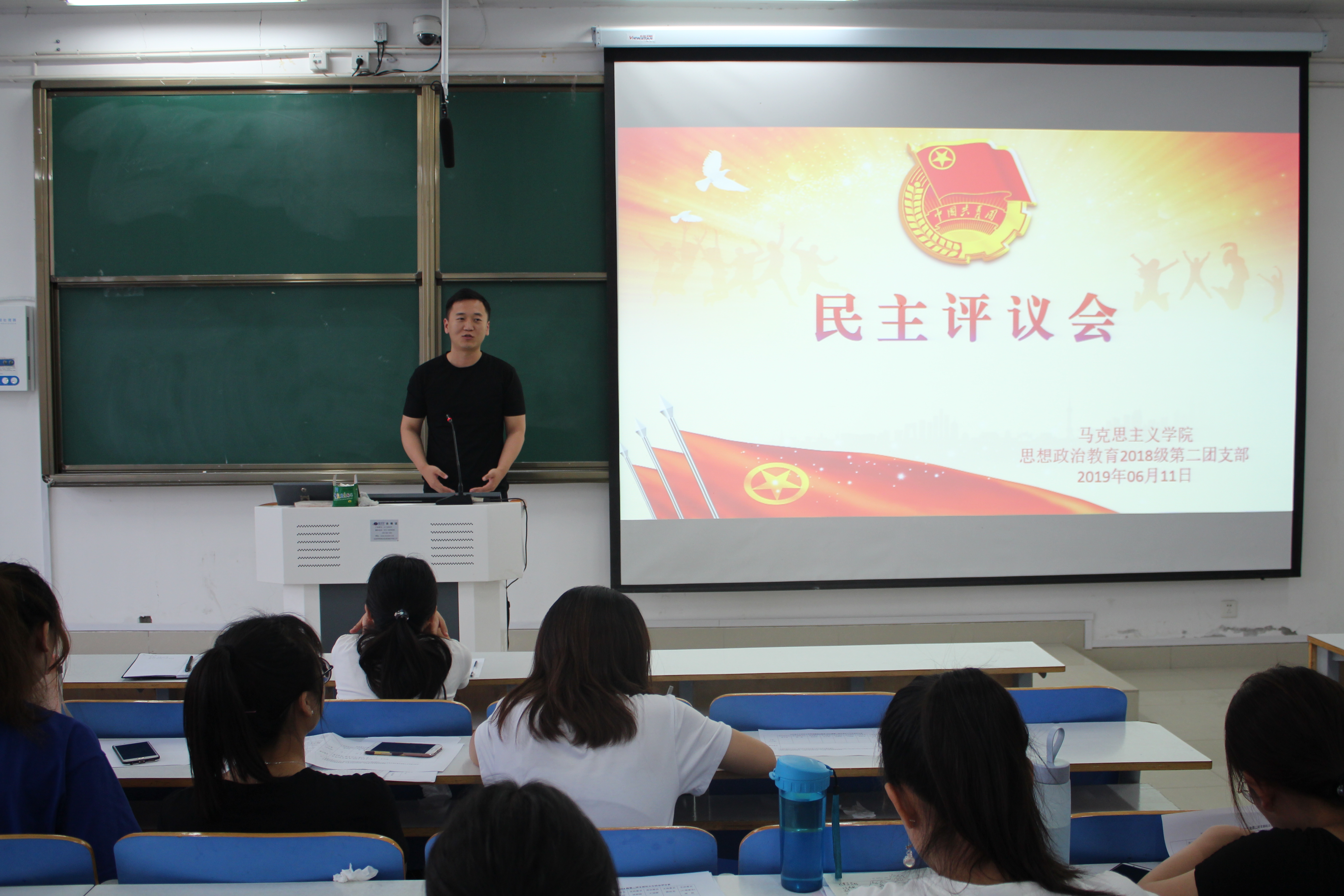 6月11日下午,太阳集团tyc59972018级第二团支部在社科楼516教室开展了民主评议会。我院团委书记曹栋、团委老师曹菁菁、学生会主席团及2018级第二团支部全体成员共同参加了本次会议。会议由团支部书记黄子晋主持。