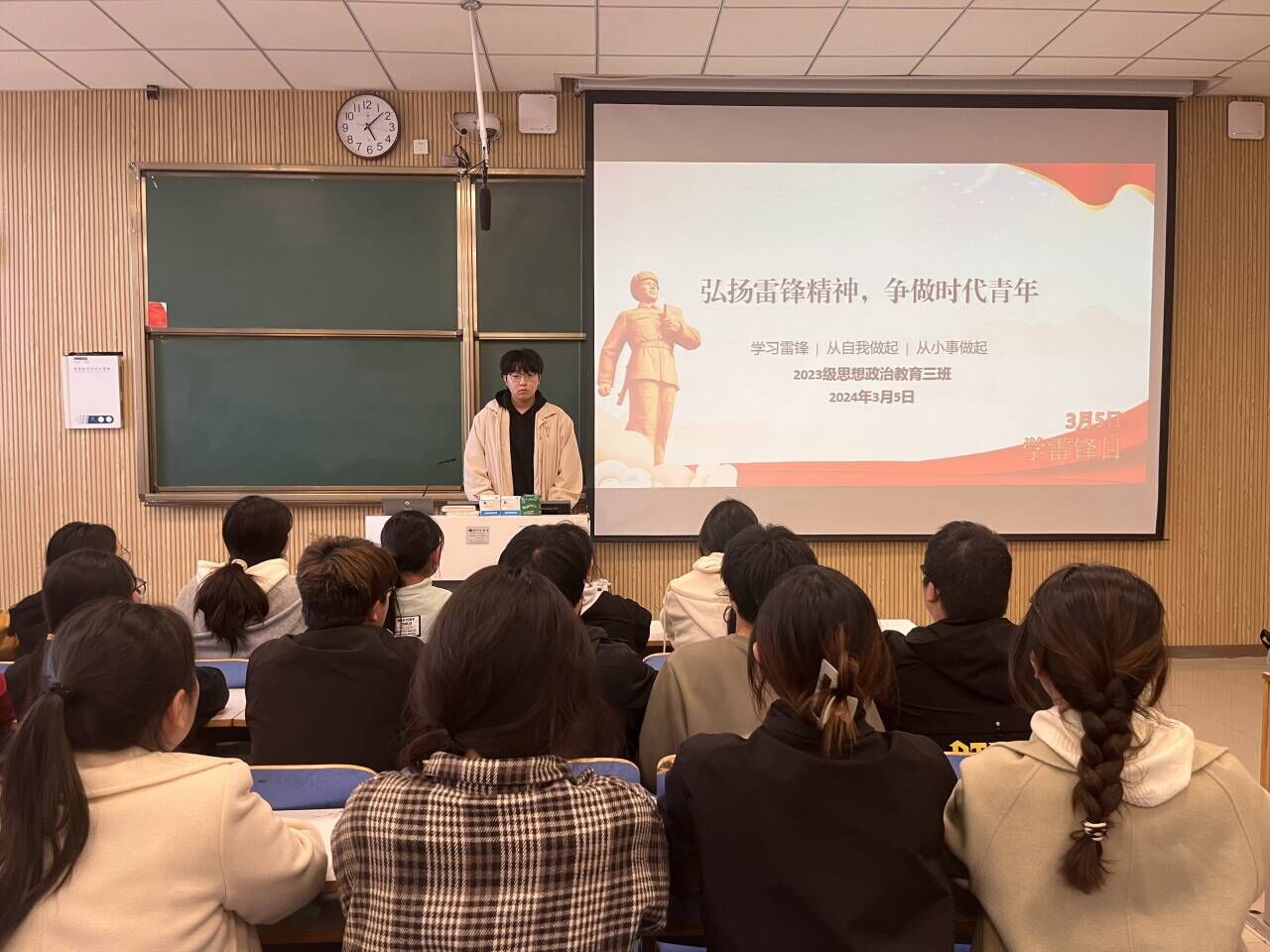 为引导广大青年学子继承优良传统,弘扬志愿服务精神,3月5日上午,太阳集团tyc59972023级思想政治教育三班在社科楼515教室召开“弘扬雷锋精神,争做时代青年”主题班会。我院2023级思想政治教育三班全体同学共同参与本次班会,班会由团支书郝瀚主持。
