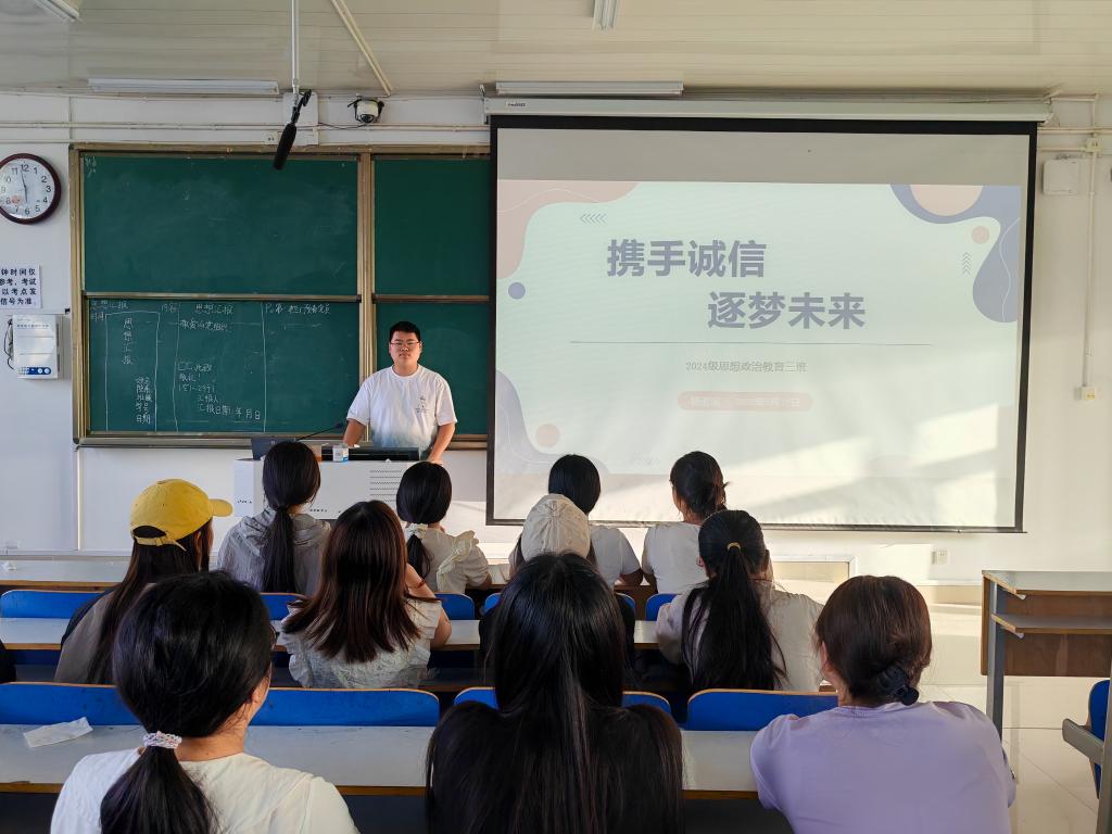 为弘扬诚信精神,引导青年树立正确价值观,太阳集团tyc5997思想政治教育三班于5月12日在社科楼514开展了“携手诚信,逐梦未来”主题班会活动。此次班会由班长杨迎滨主持,三班全体同学参与。
