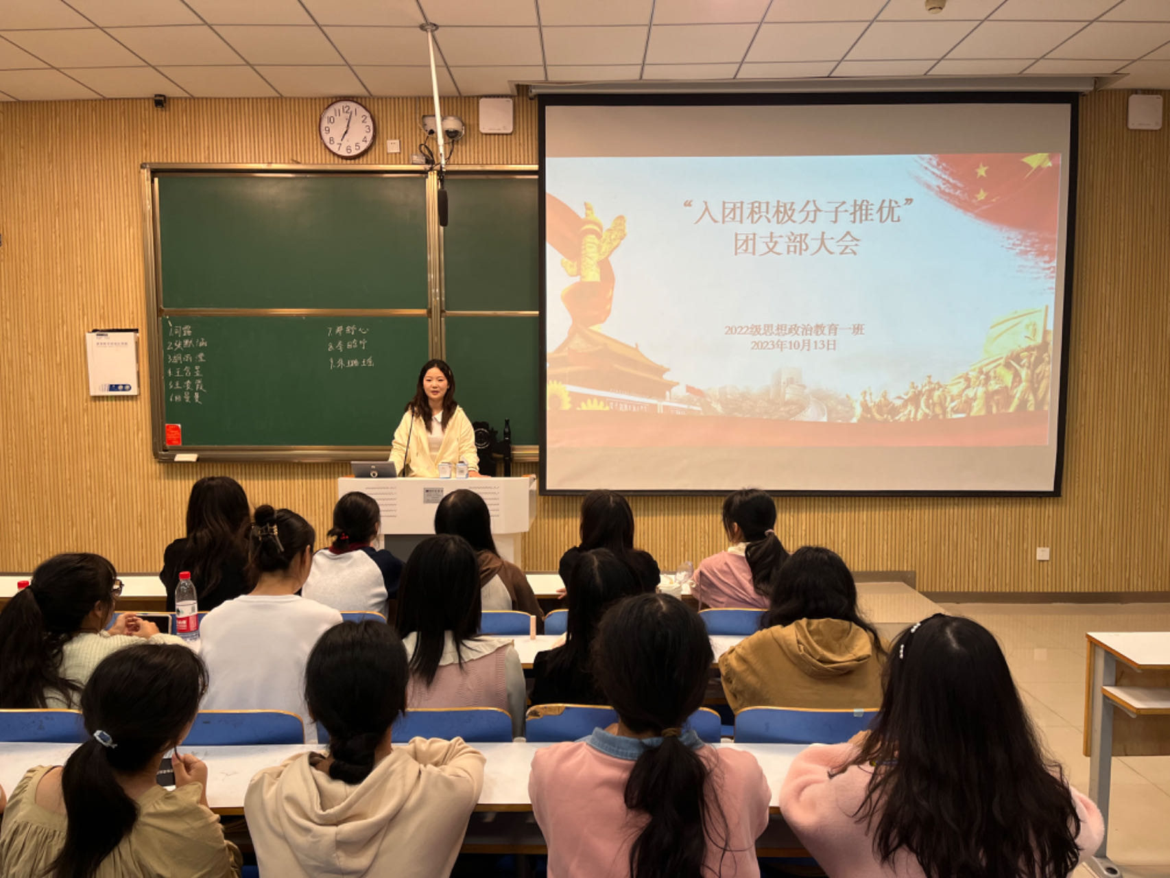 为加强学院共青团队伍建设,10月13日下午,太阳集团tyc59972022级思想政治教育一班在社科楼515教室召开“入团积极分子推优”团支部大会。我院2022级思想政治教育一班全体同学共同参与本次会议,会议由团支书李佳茹主持。
