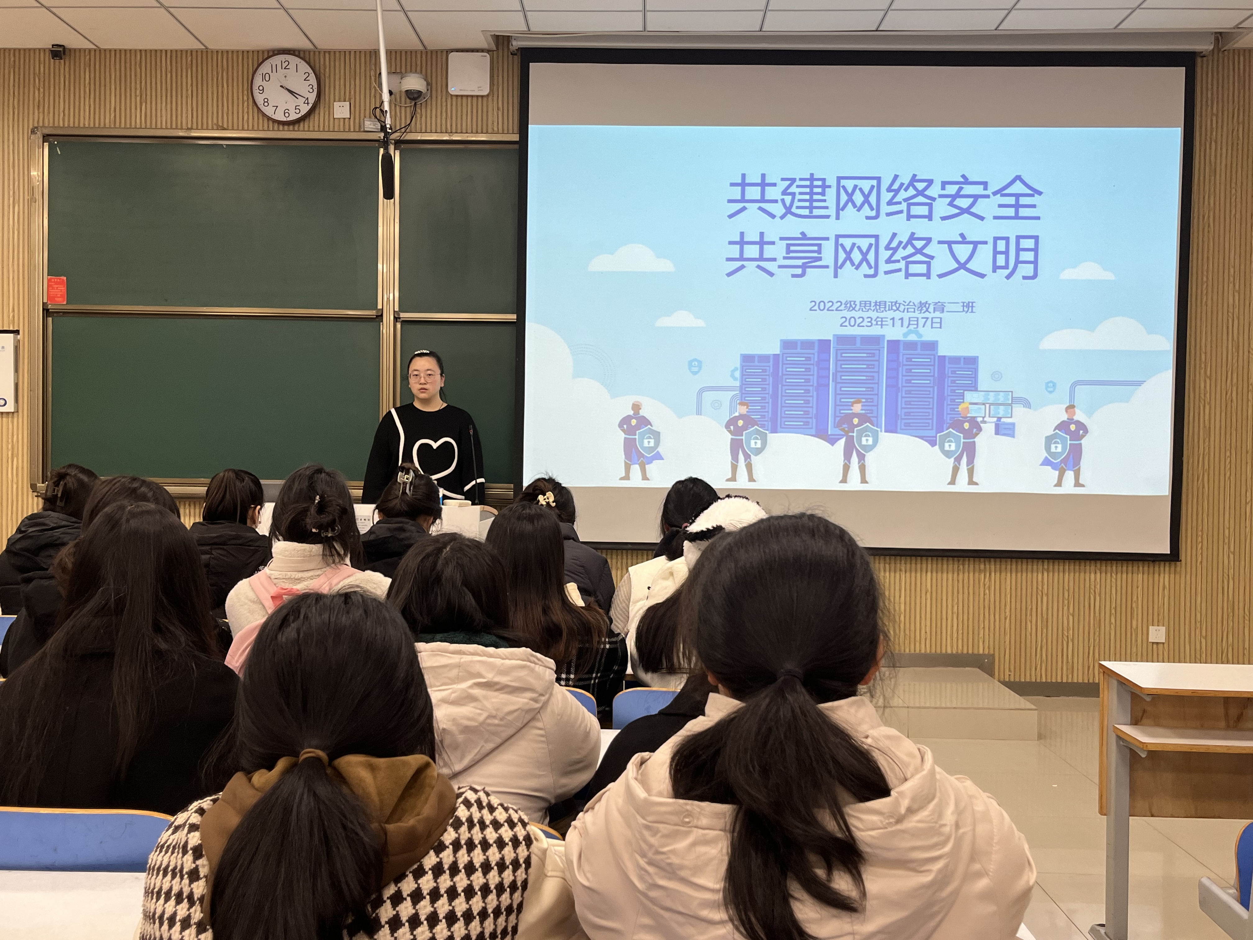11月7日下午,太阳集团tyc59972022级思想政治教育二班在社科楼515教室开展“共建网络安全,共享网络文明”主题团日活动。我院2022级思想政治教育二班全体成员共同参与此次团日活动。活动由团支书李佳音主持。