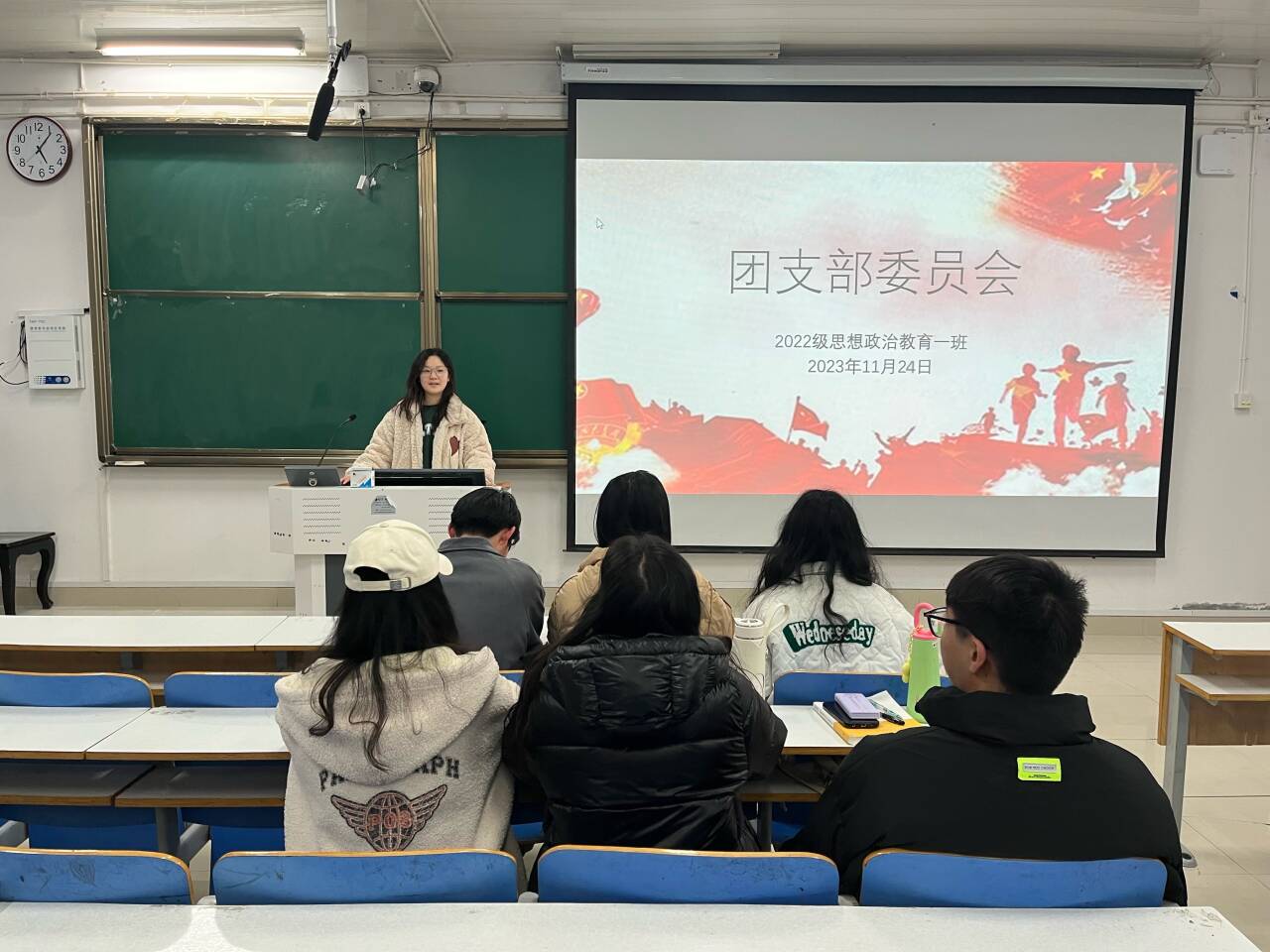为进一步加强团支部队伍建设,11月24日下午,太阳集团tyc59972022级思想政治教育一班在社科楼514教室召开“强化队伍建设”团支部委员会。2022级思想政治教育一班团支部委员共同参与本次会议,会议由团支书李佳茹主持。