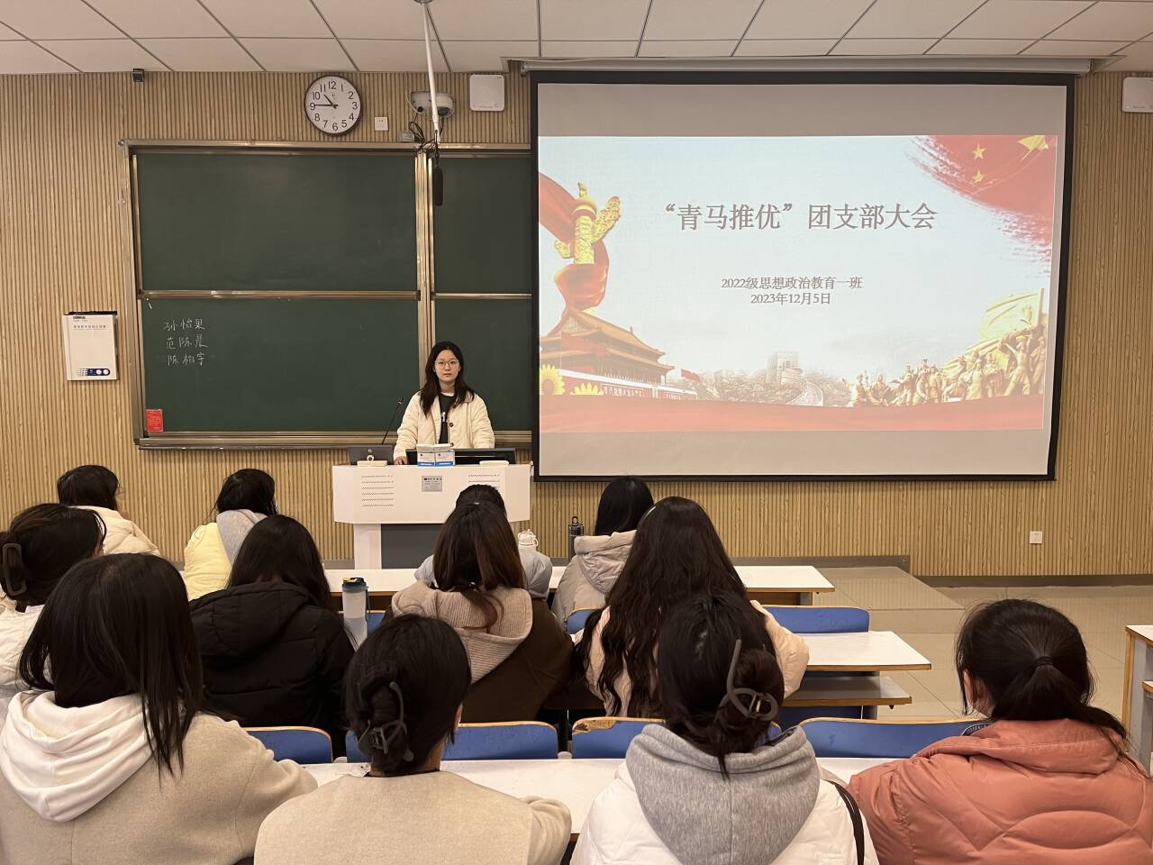 为履行为党育人的根本任务,推进党的事业薪火相传,12月5日上午,太阳集团tyc59972022级思想政治教育一班在社科楼515教室召开“青马推优”团支部大会。我院2022级思想政治教育一班全体同学共同参与本次大会,大会由团支书李佳茹主持。