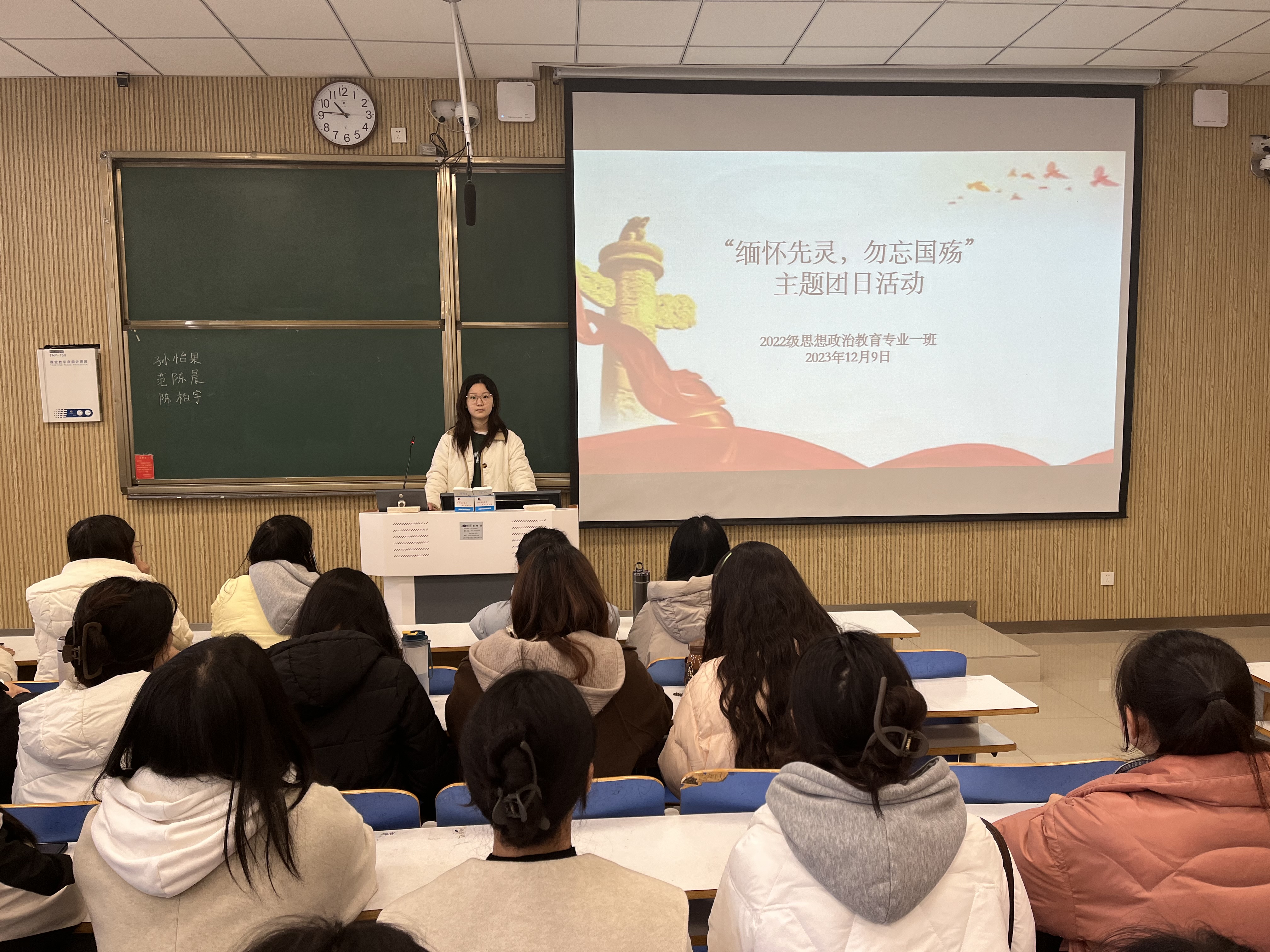 为推动同学们铭记历史,激发爱国热情,12月9日上午,太阳集团tyc59972022级思想政治教育一班在社科楼515教室召开“缅怀先灵,勿忘国殇”主题团课。我院2022级思想政治教育一班全体同学共同参与本次团课,团课由团支书李佳茹主持。