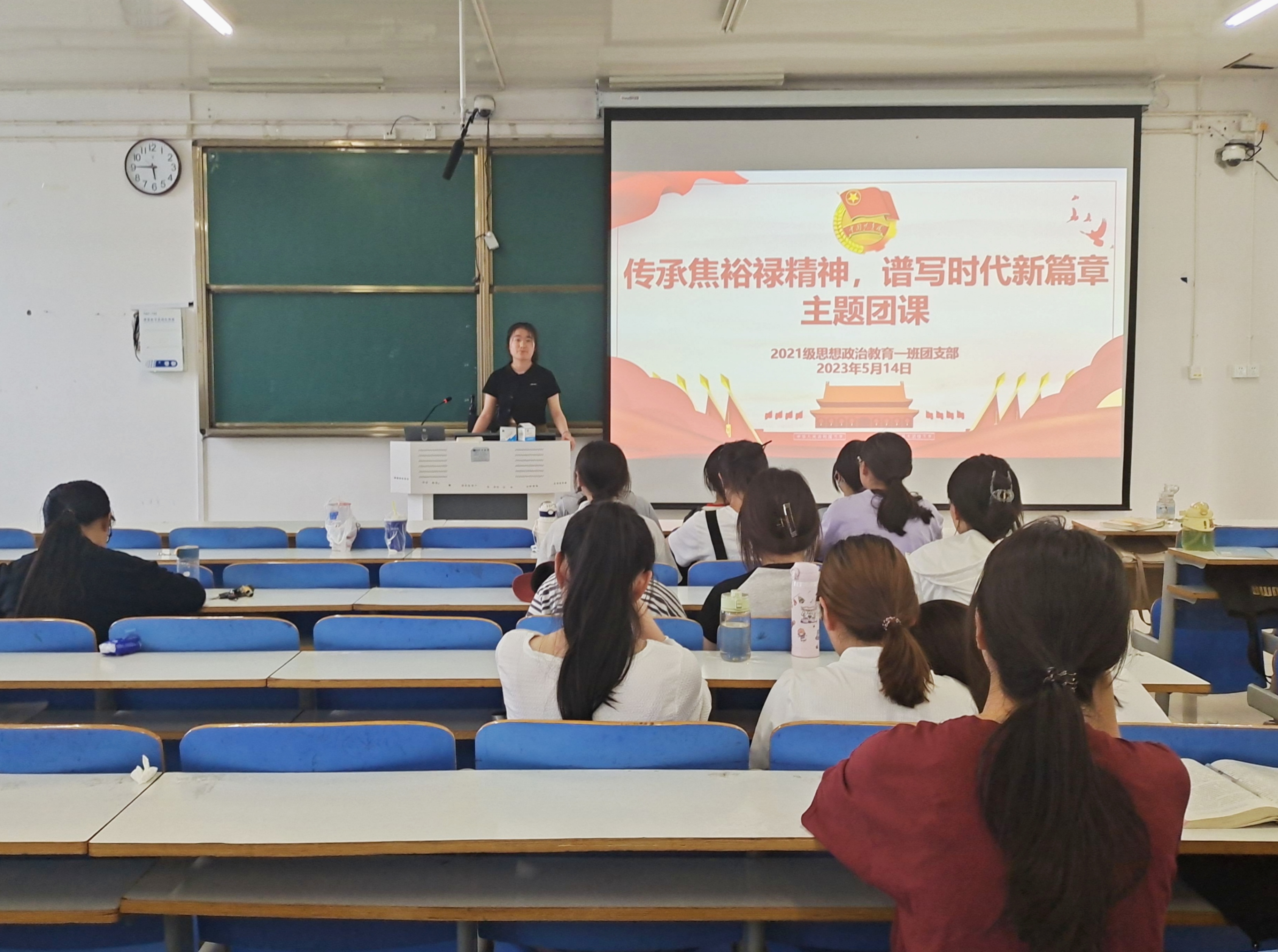 5月14日下午,太阳集团tyc59972021级思想政治教育一班在社科楼514教室召开“传承焦裕禄精神,奋进新征程”主题团课。2021级思想政治教育一班全体团员共同参加了本次团课。团课由副班长雷敏主持。