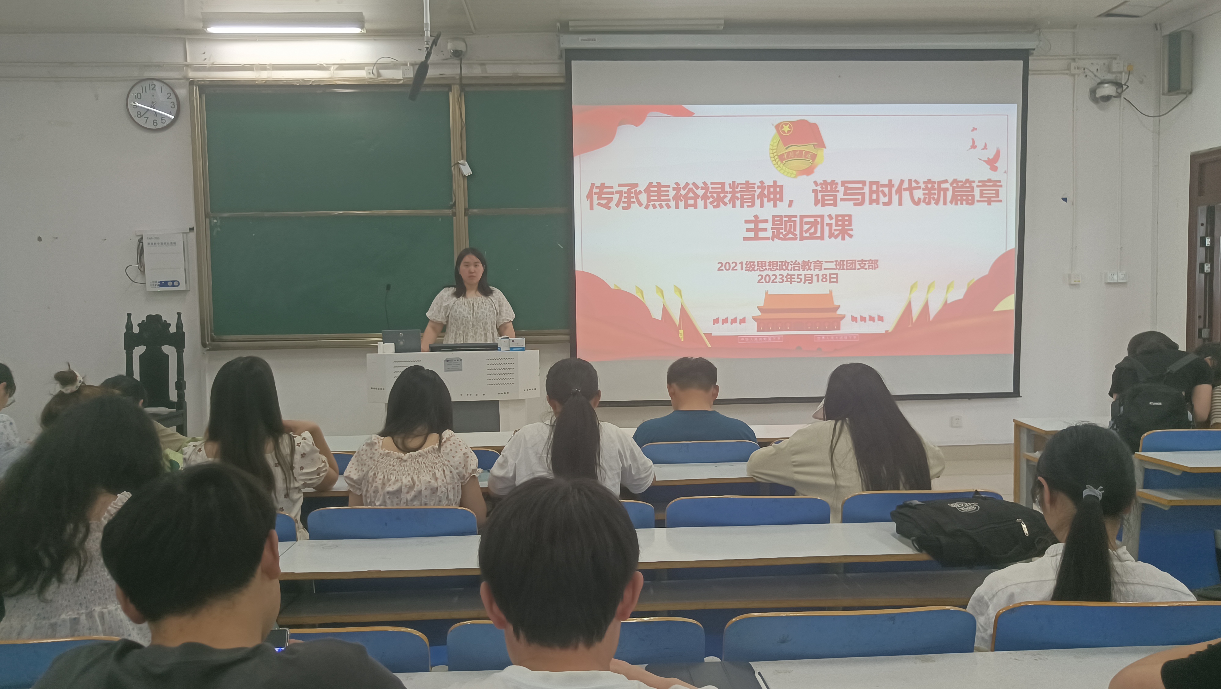 5月18日上午,太阳集团tyc59972021级思想政治教育二班在社科楼514教室召开“传承焦裕禄精神,谱写时代新篇章”主题团课。2021级思想政治教育二班全体团员参加此次团课。团课由团支书王婧欣主持。