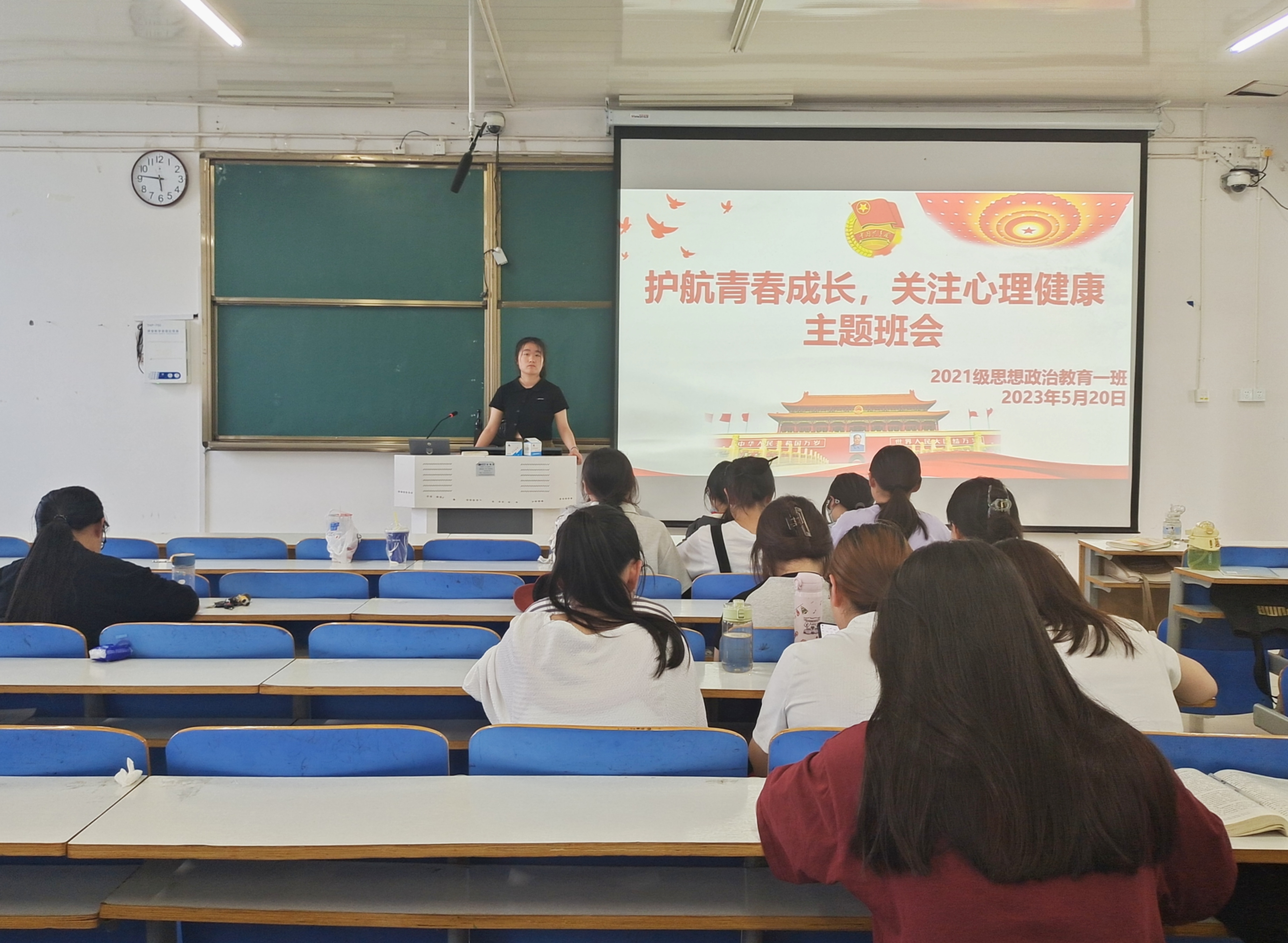 5月20日下午,太阳集团tyc59972021级思想政治教育一班在社科楼514教室召开“护航青春成长,关注心理健康”主题班会。2021级思想政治教育一班全体成员共同参加了本次班会。班会由副班长雷敏主持。