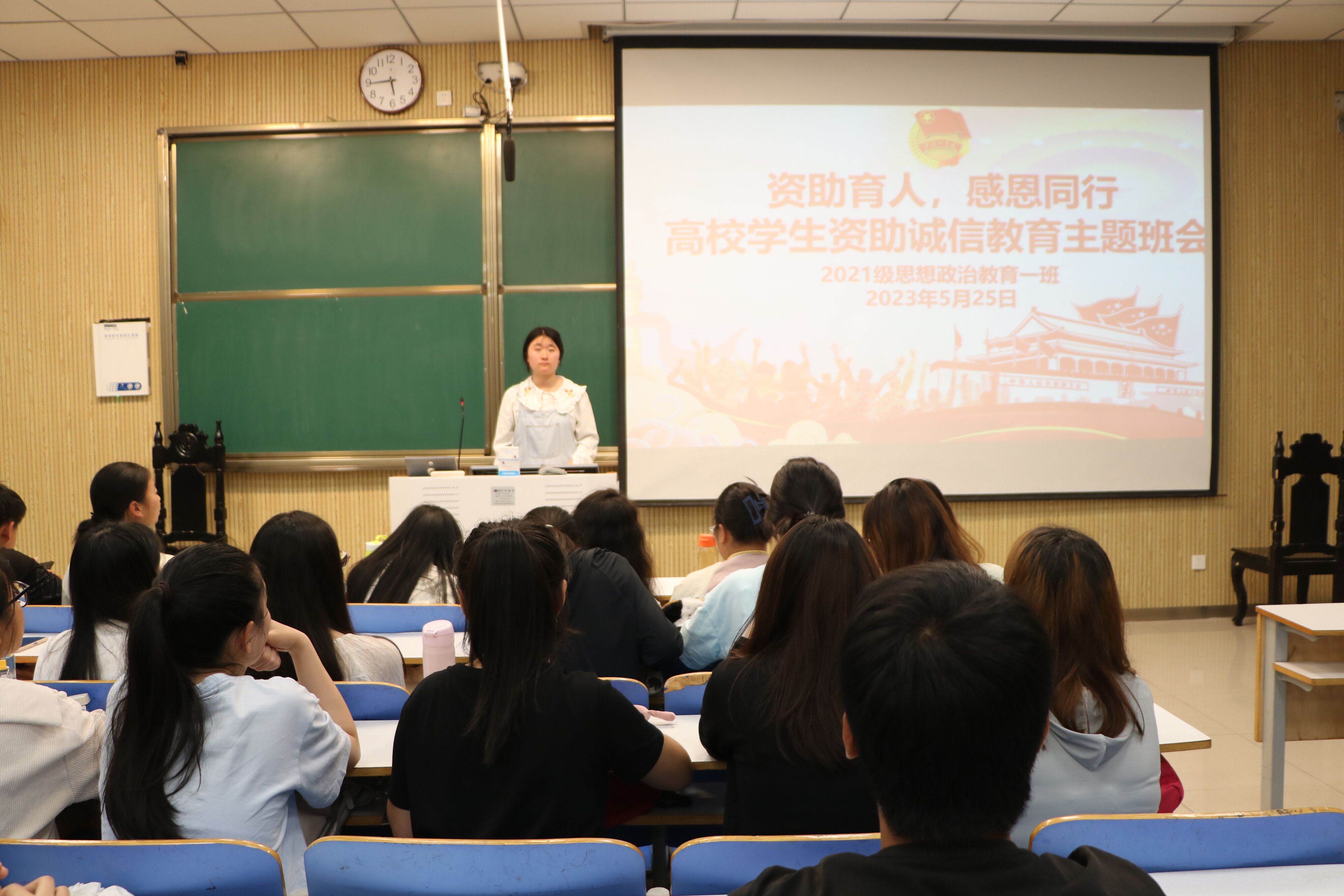 5月25日下午,太阳集团tyc59972021级思想政治教育一班在社科楼514教室召开“资助育人,感恩同行”高校学生资助诚信教育主题班会。2021级思想政治教育一班全体成员共同参加了本次班会,班会由副班长雷敏主持。