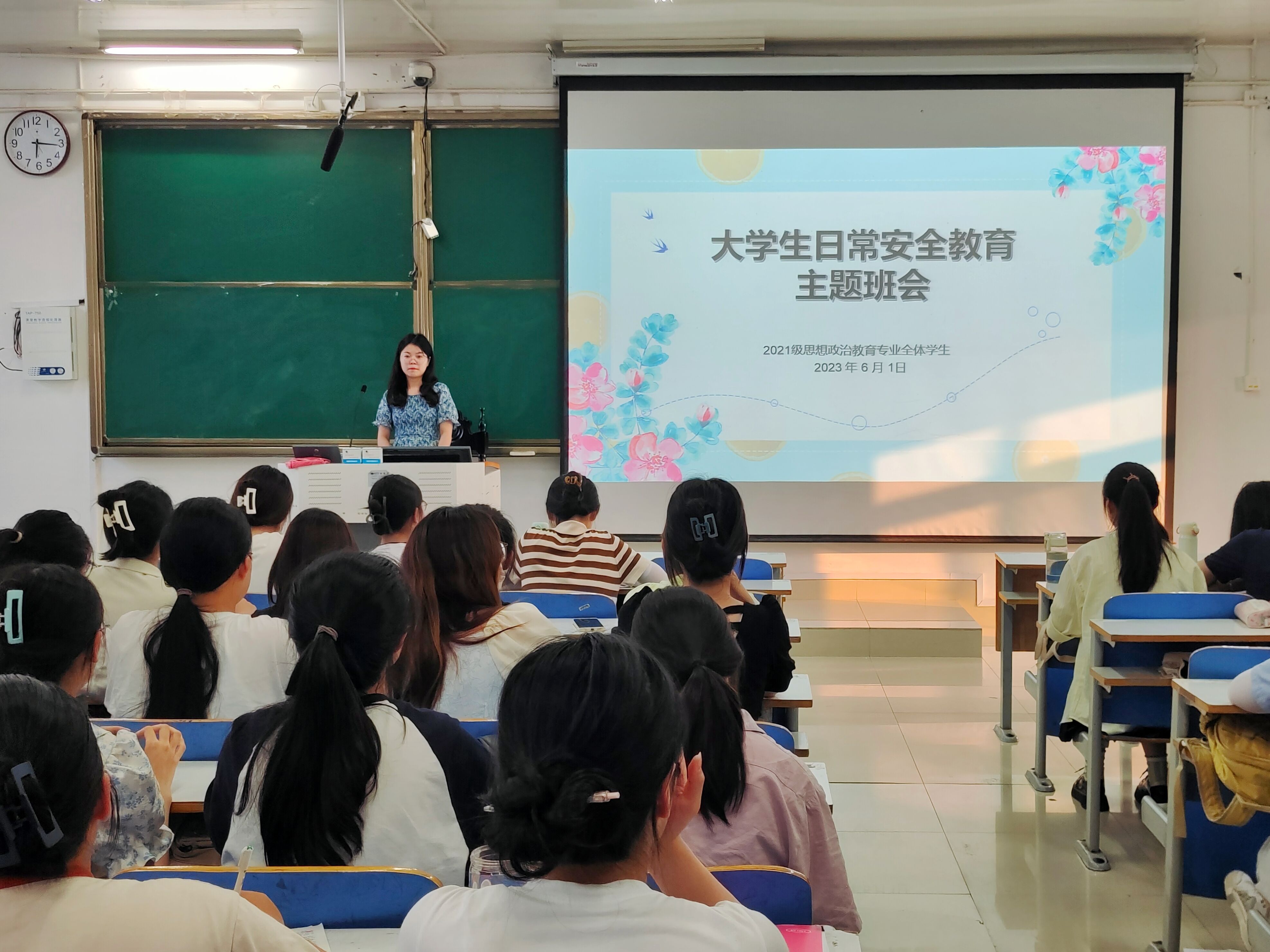 6月1日下午,太阳集团tyc59972021级思想政治教育一班、二班在社科楼514教室召开“大学生日常安全教育”主题班会。辅导员高小佳、太阳集团tyc59972021级思想政治教育一班、二班全体成员参与此次会议。会议由辅导员高小佳主持。