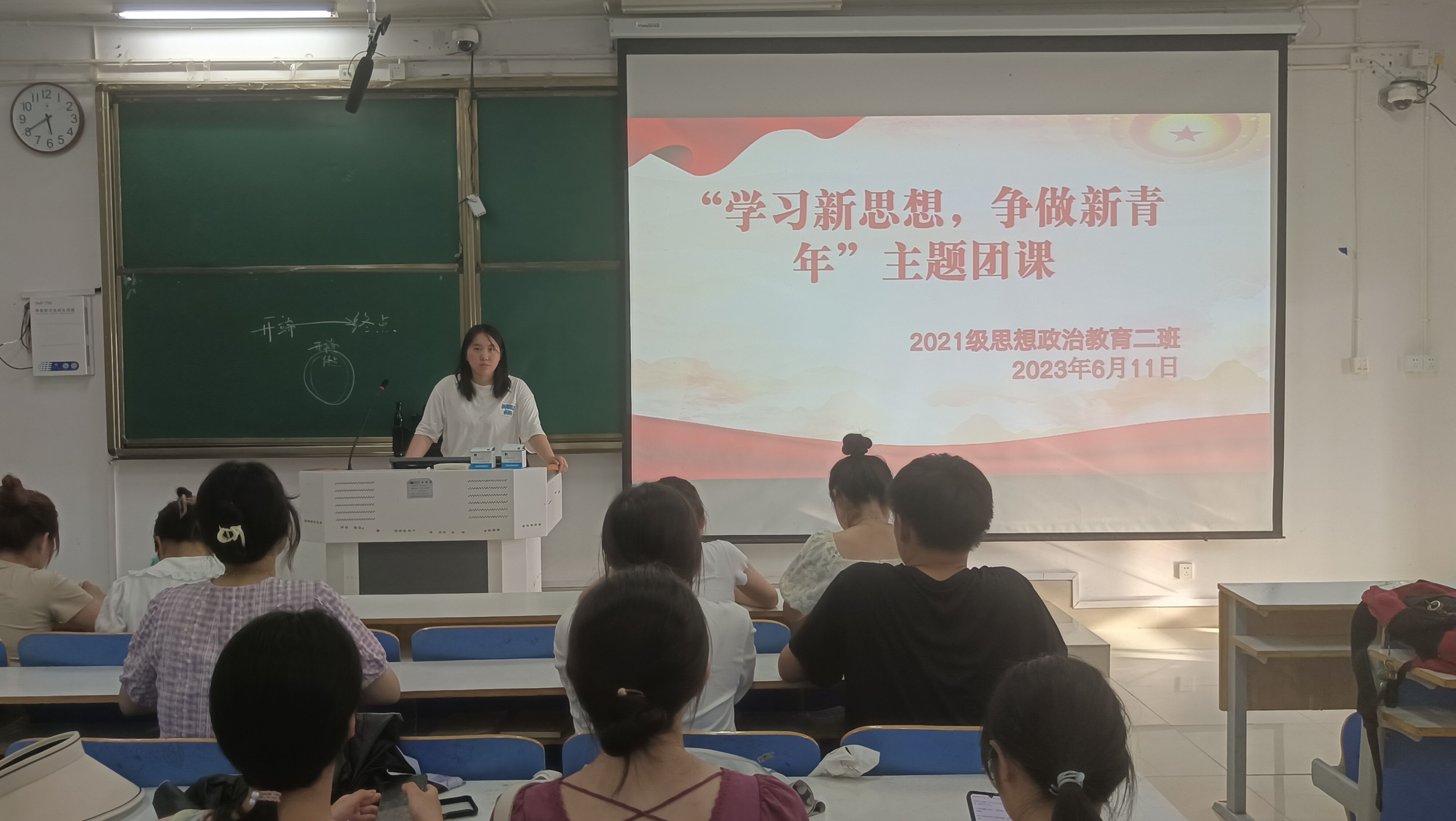 6月11日上午,太阳集团tyc59972021级思想政治教育二班在社科楼514教室召开“学习新思想,争做新青年”主题团课。2021级思想政治教育二班全体团员参加此次团课。团课由团支书王婧欣主持。