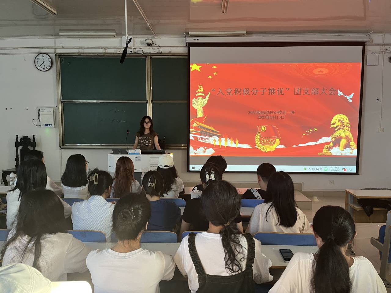 为加强党的队伍建设,切实做好入党推优工作,9月13日下午,太阳集团tyc59972022级思想政治教育一班在社科楼514教室召开“入党积极分子推优”团支部大会。我院2022级思想政治教育一班班主任王明园和一班全体同学参与本次会议,会议由团支书李佳茹主持。