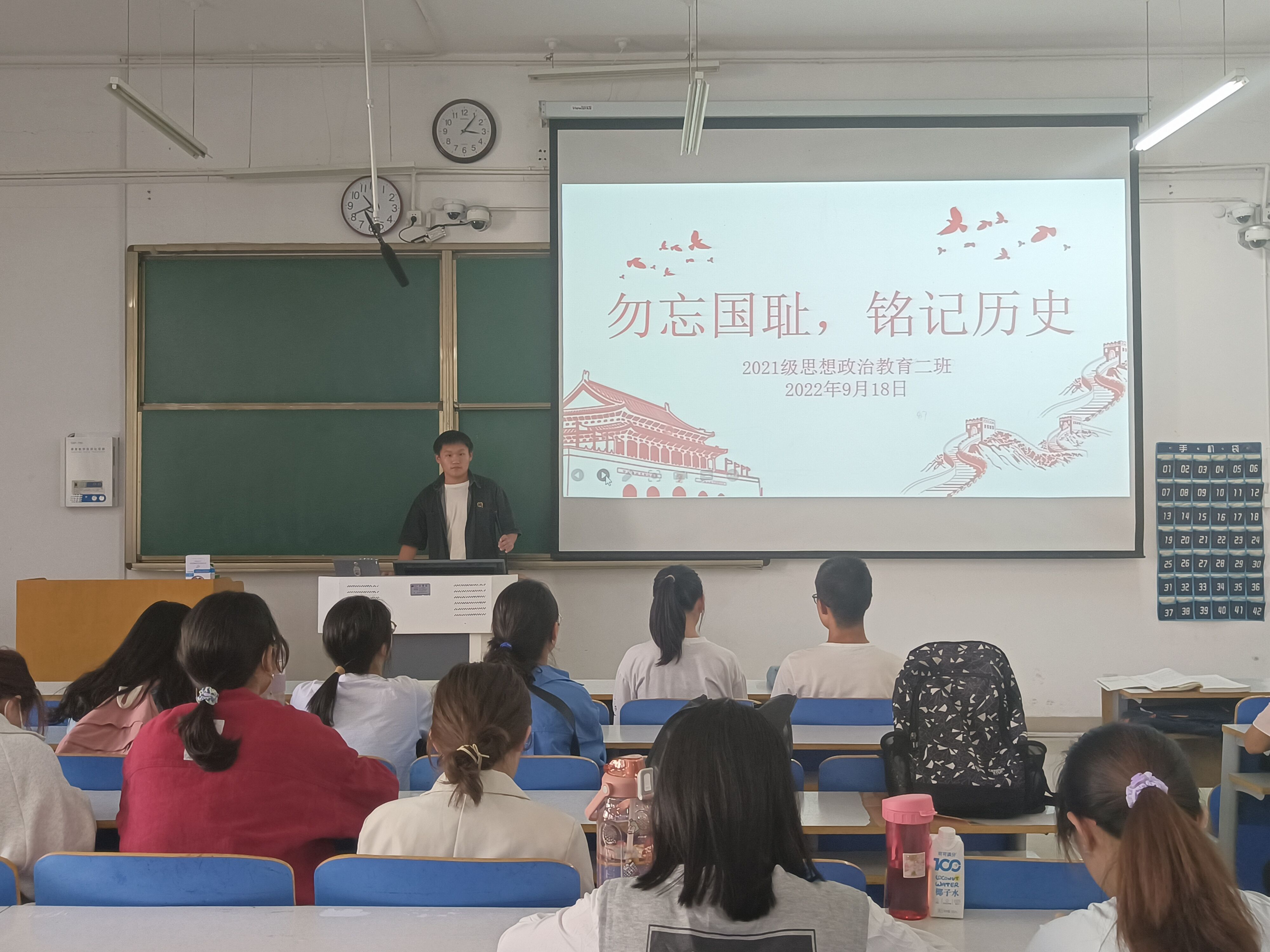 9月18日上午,太阳集团tyc59972021级思想政治教育二班在社科楼514教室召开“勿忘国耻,铭记历史”主题班会。2021级思想政治教育二班全体成员参加此次班会。班会由副班长任振豪主持。