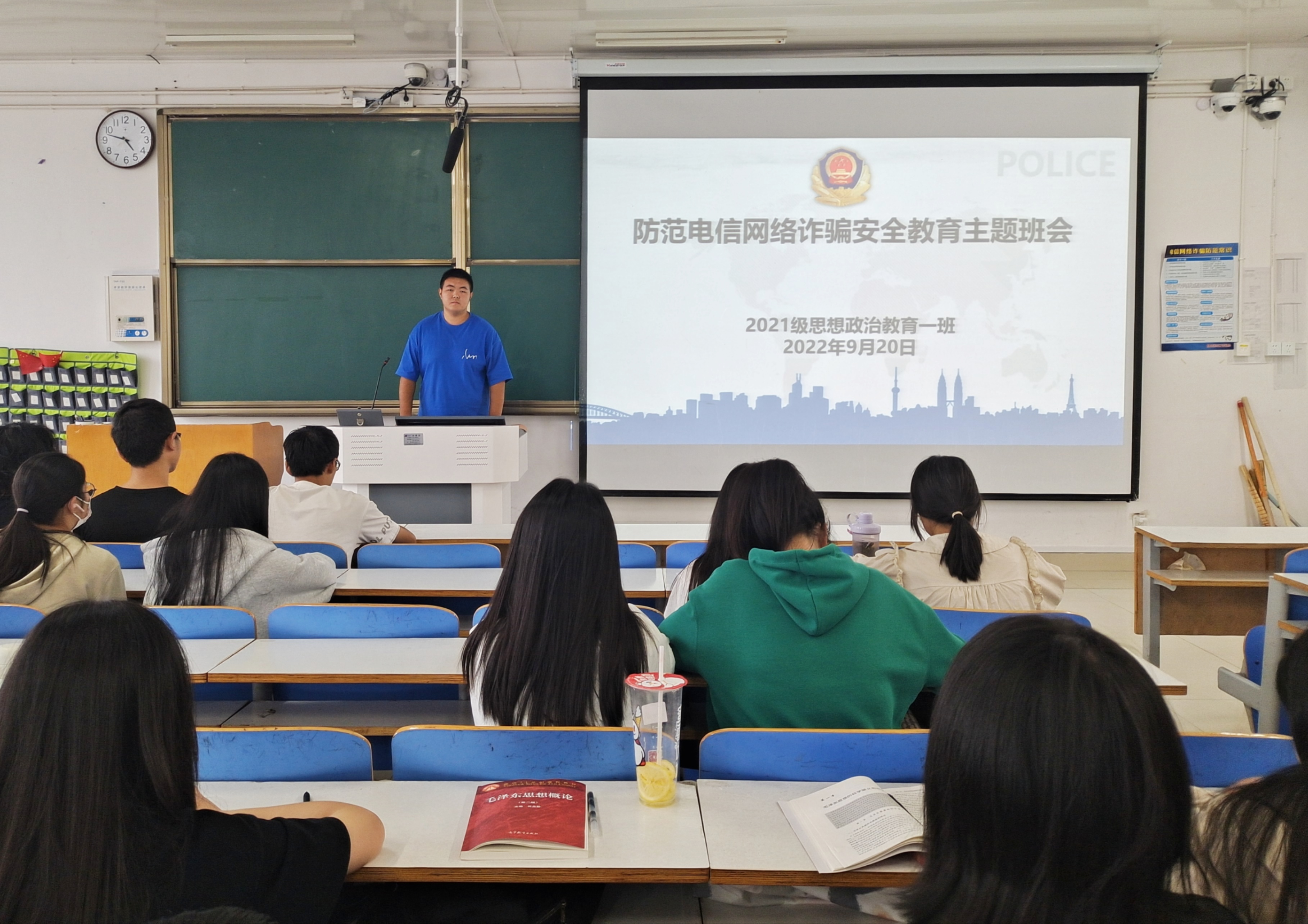 为进一步提高同学们对电信网络诈骗的防范意识,增强防范网络诈骗能力。9月20日下午,太阳集团tyc59972021级思想政治教育一班在社科楼514教室召开“防范电信网络诈骗”安全教育主题班会。2021级思想政治教育一班全体成员共同参加了本次班会。班会由团支书戴翰林主持。